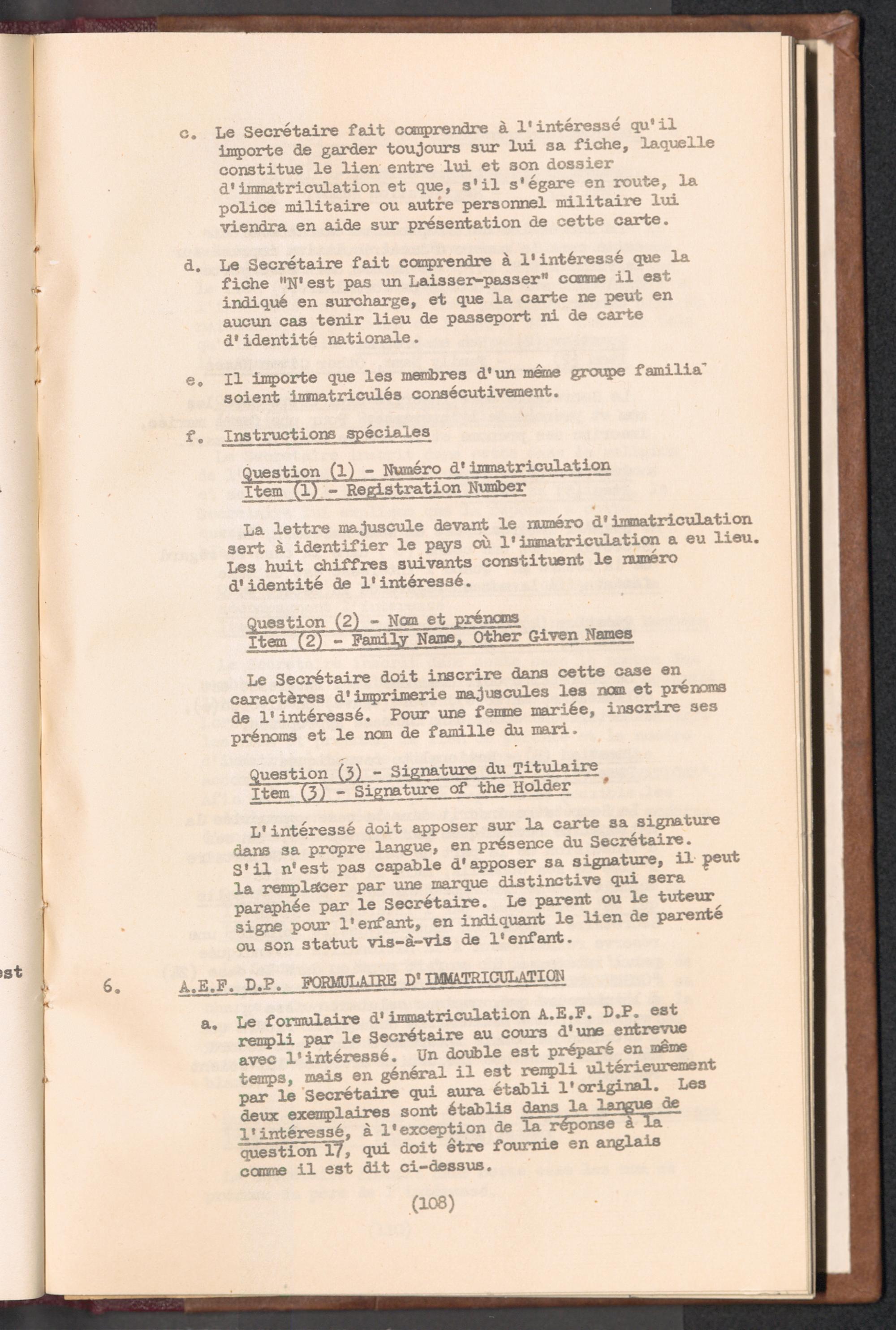 Displaced Persons - Registration Instructions Chapter VIII (French)