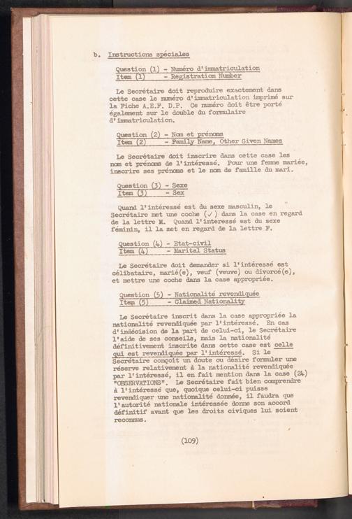 Displaced Persons - Registration Instructions Chapter VIII (French)