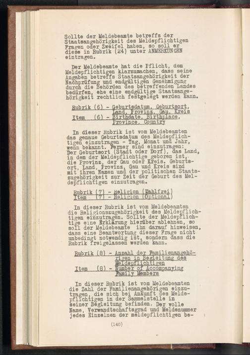Displaced Persons - Registration Instructions Chapter X (German)