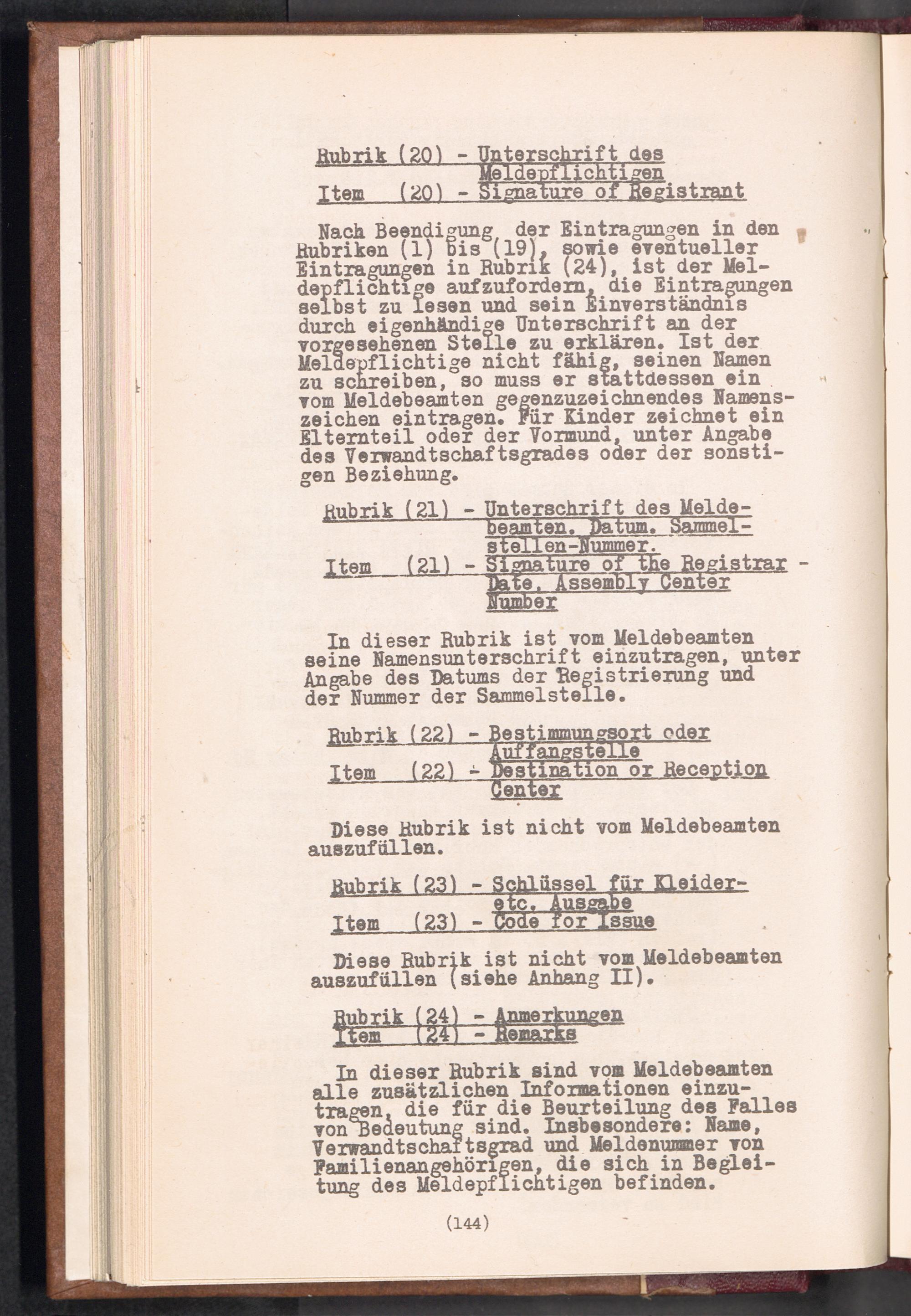 Displaced Persons - Registration Instructions Chapter X (German)