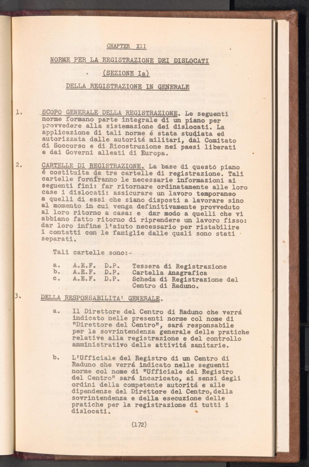 Displaced Persons - Registration Instructions Chapter XII (Italian)