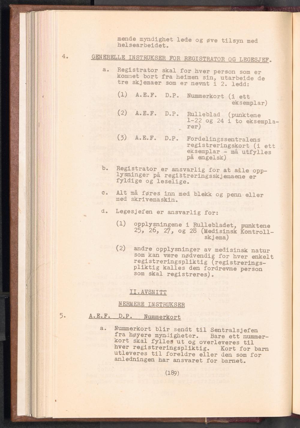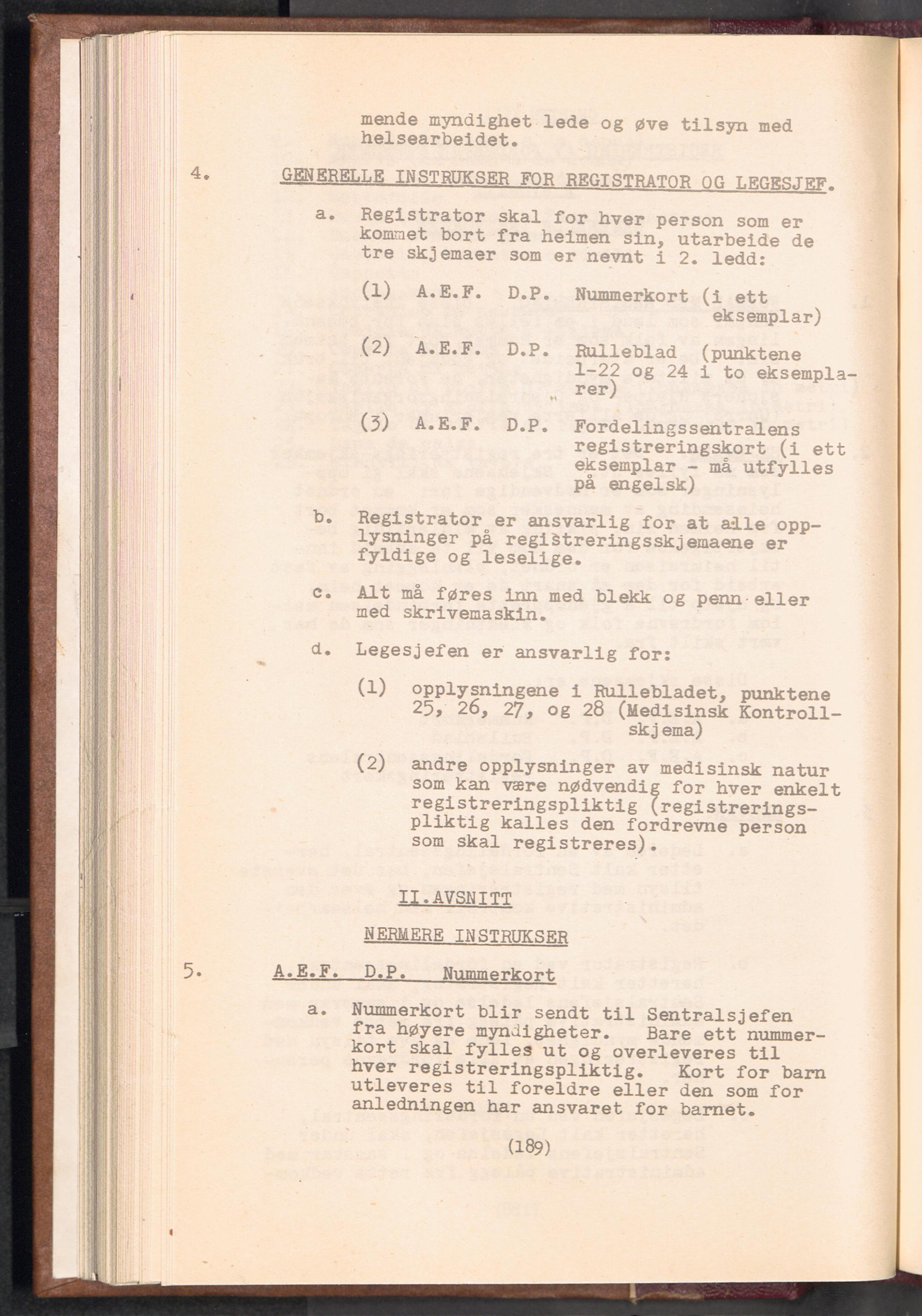 Displaced Persons - Registration Instructions Chapter XIII (Norwegian)