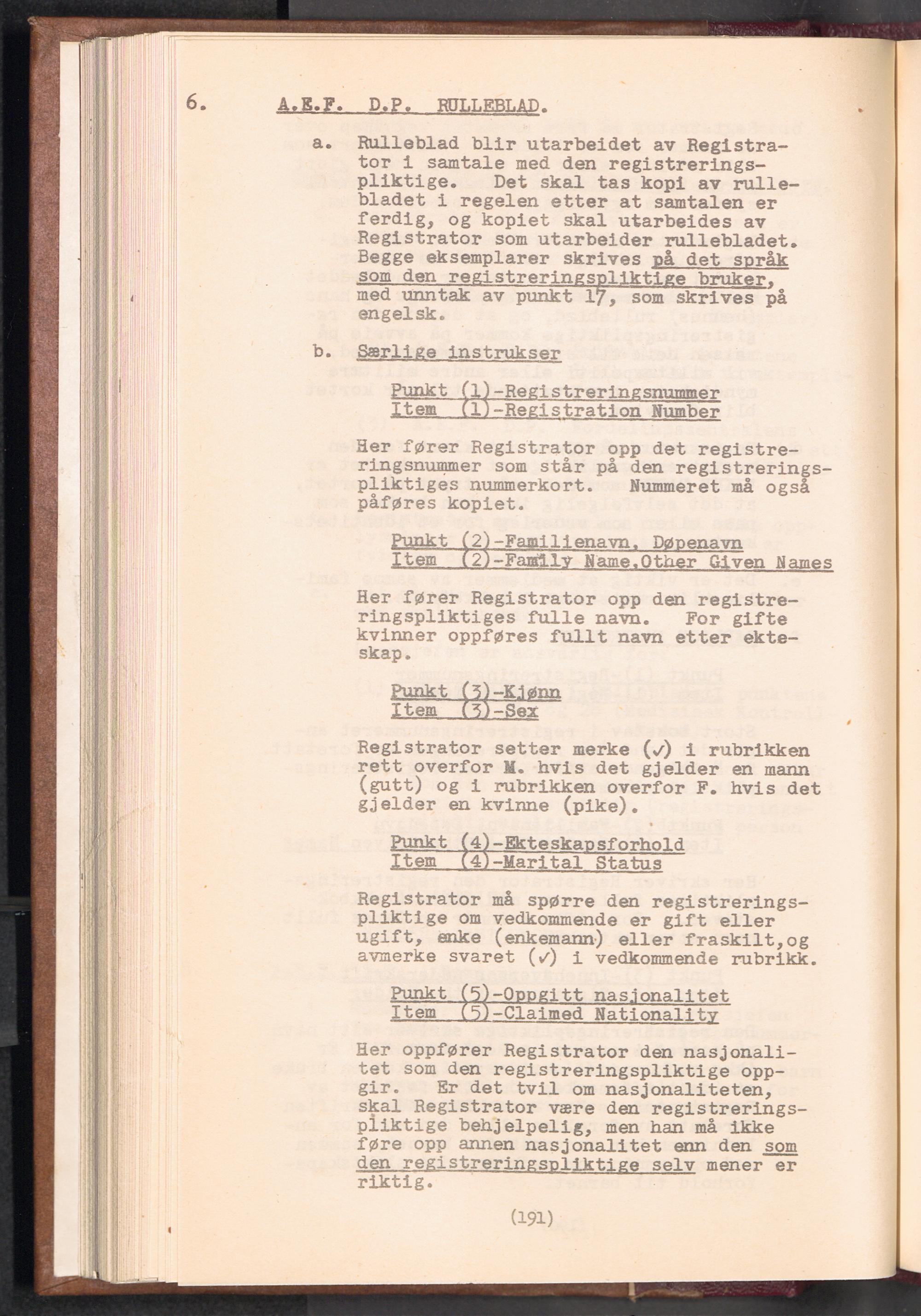 Displaced Persons - Registration Instructions Chapter XIII (Norwegian)