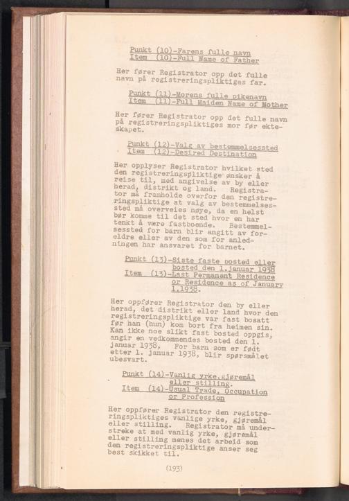 Displaced Persons - Registration Instructions Chapter XIII (Norwegian)