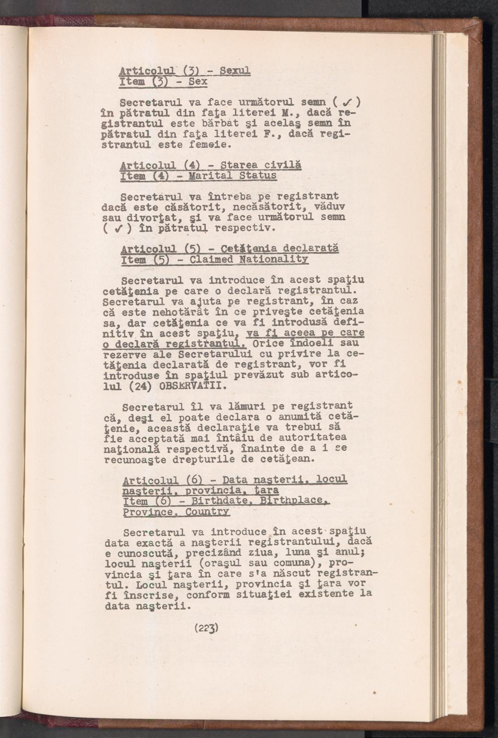 Displaced Persons - Registration Instructions Chapter XV (Rumanian)