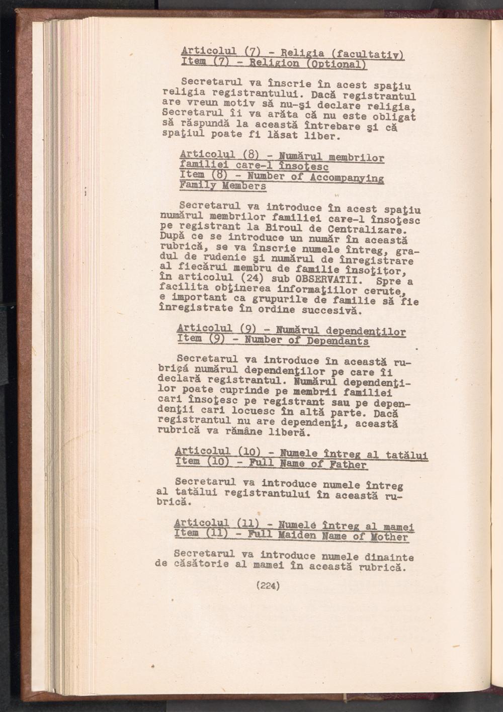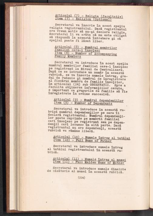 Displaced Persons - Registration Instructions Chapter XV (Rumanian)