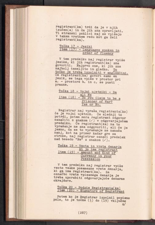 Displaced Persons - Registration Instructions Chapter XIX (Slovene)