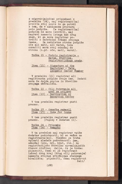 Displaced Persons - Registration Instructions Chapter XIX (Slovene)