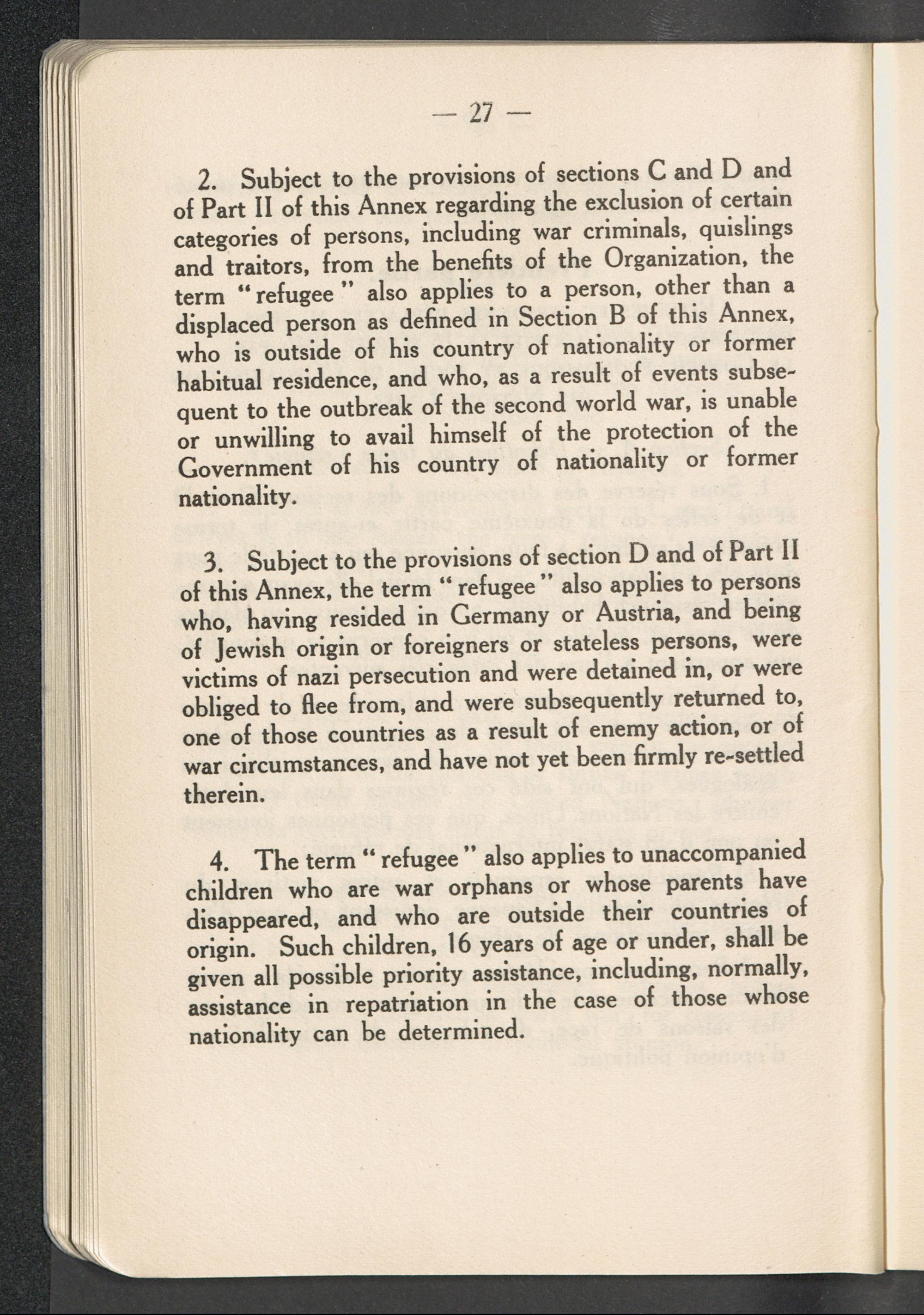 Constitution of the International Refugee Organization and agreement on interim measures... Annex I: Definitions