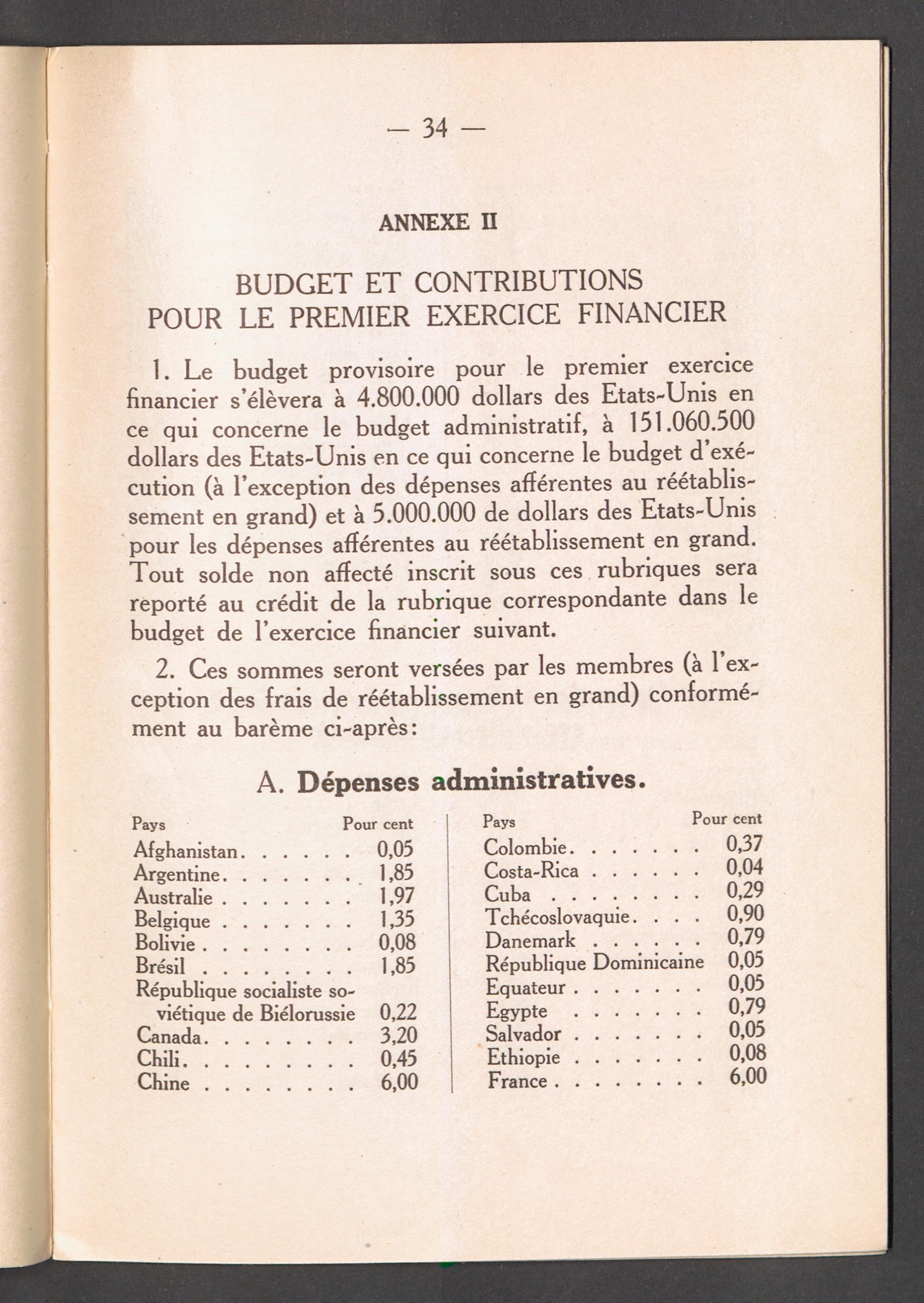 PDF 34 Annexe II: Budget et contributions pour le premier exercice financier