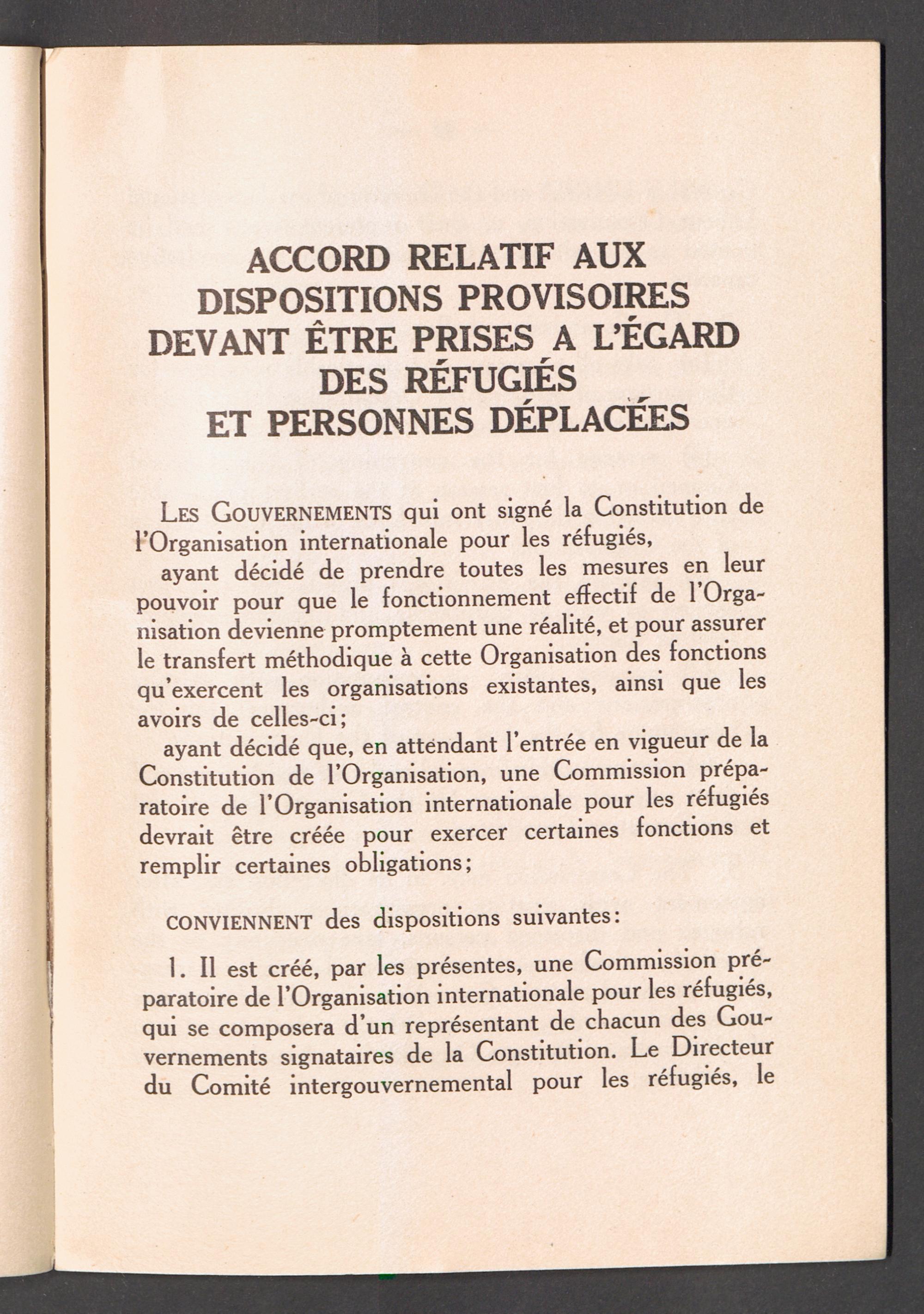 PDF  Accord relatif aux dispositions provisoires devant être prises a l'égard des réfugiés et personnes déplacées