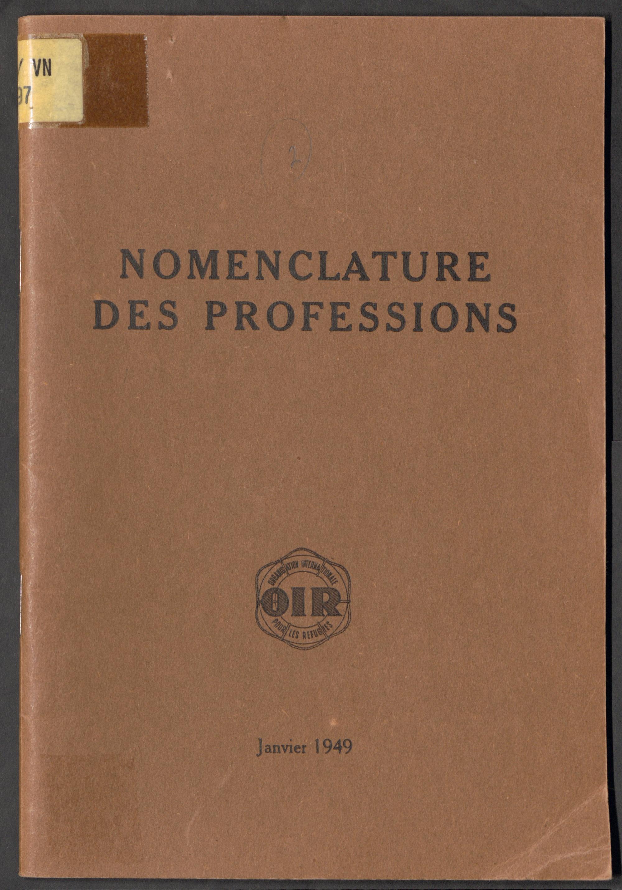 Nomenclature des professions avec définitions et renvois à utiliser pour l'établissement des rapports de l'OIR sur les aptitudes professionnelles des réfugiés / International Refugee Organization