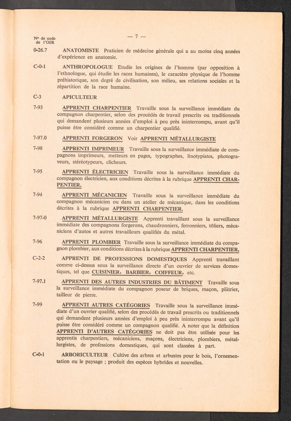 Nomenclature des professions avec définitions et renvois à utiliser pour l'établissement des rapports de l'OIR sur les aptitudes professionnelles des réfugiés / International Refugee Organization