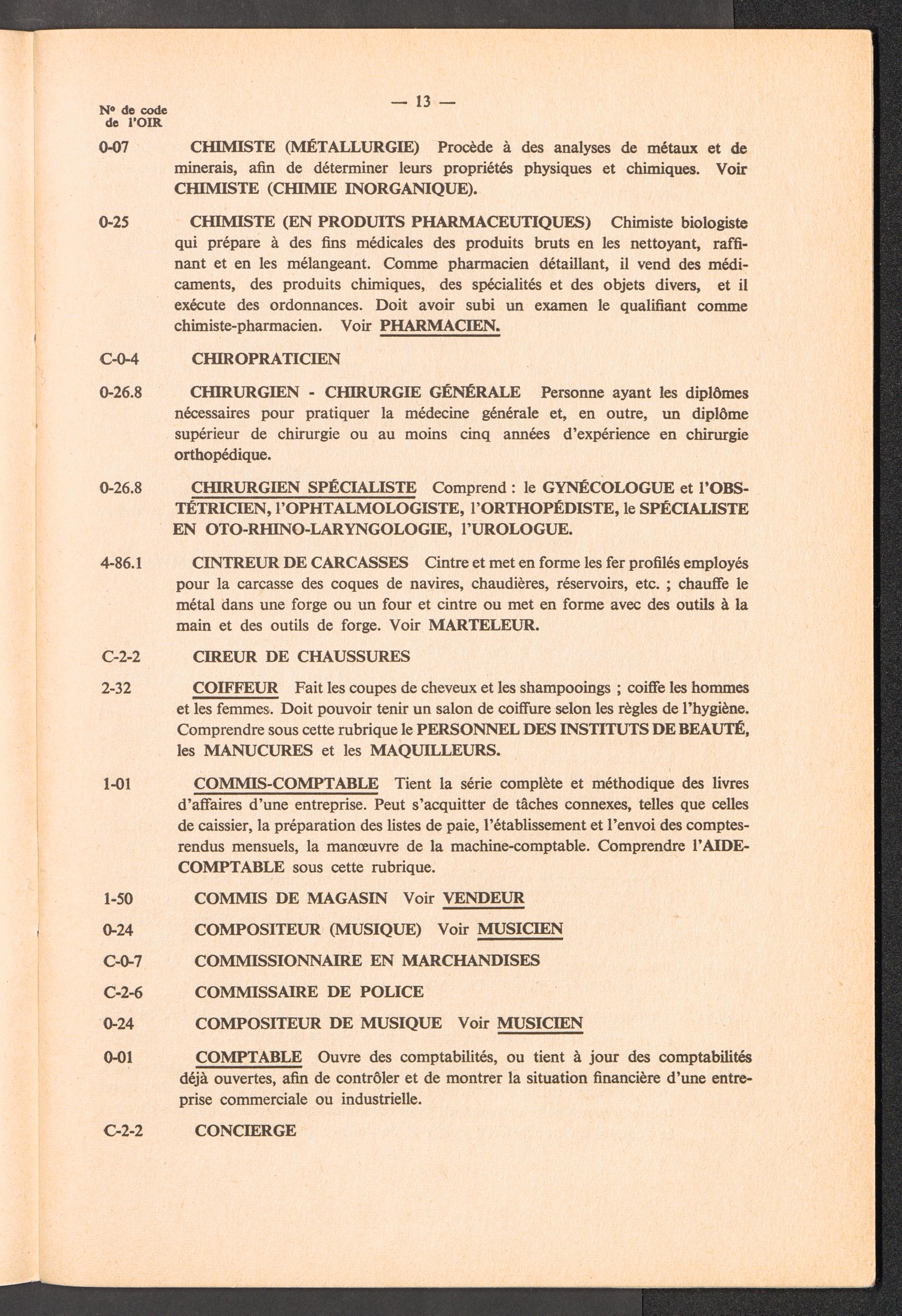 Nomenclature des professions avec définitions et renvois à utiliser pour l'établissement des rapports de l'OIR sur les aptitudes professionnelles des réfugiés / International Refugee Organization