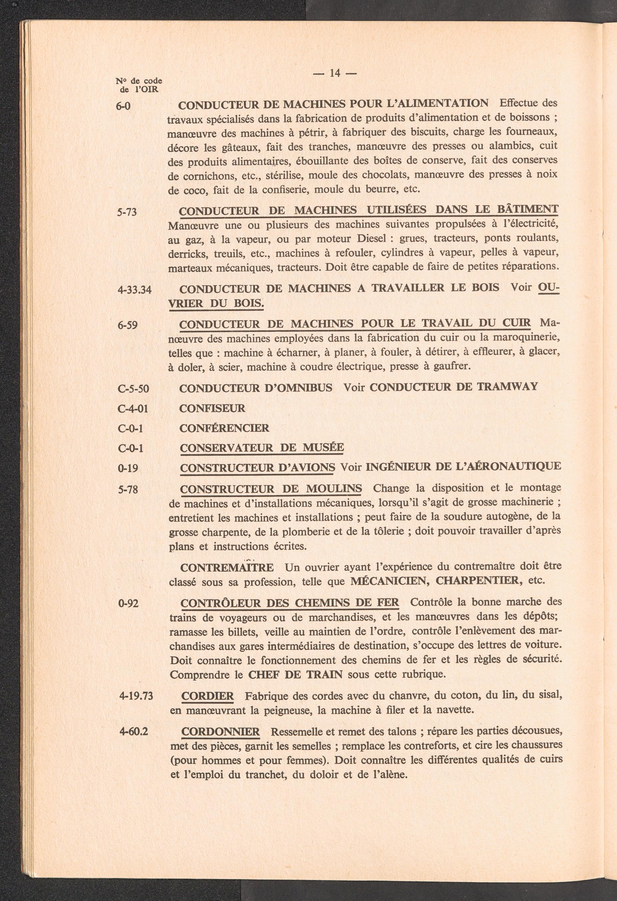 Nomenclature des professions avec définitions et renvois à utiliser pour l'établissement des rapports de l'OIR sur les aptitudes professionnelles des réfugiés / International Refugee Organization