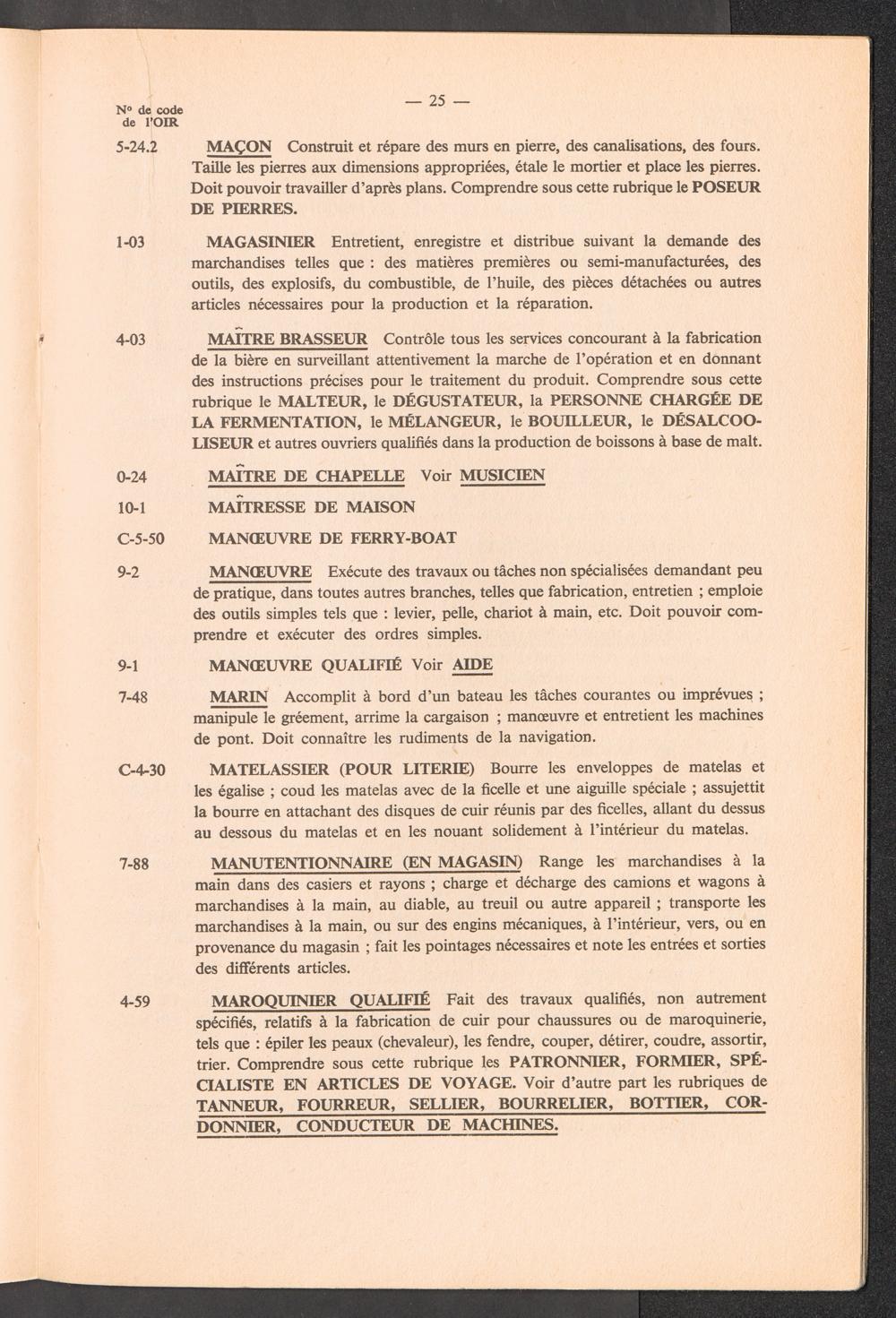 Nomenclature des professions avec définitions et renvois à utiliser pour l'établissement des rapports de l'OIR sur les aptitudes professionnelles des réfugiés / International Refugee Organization