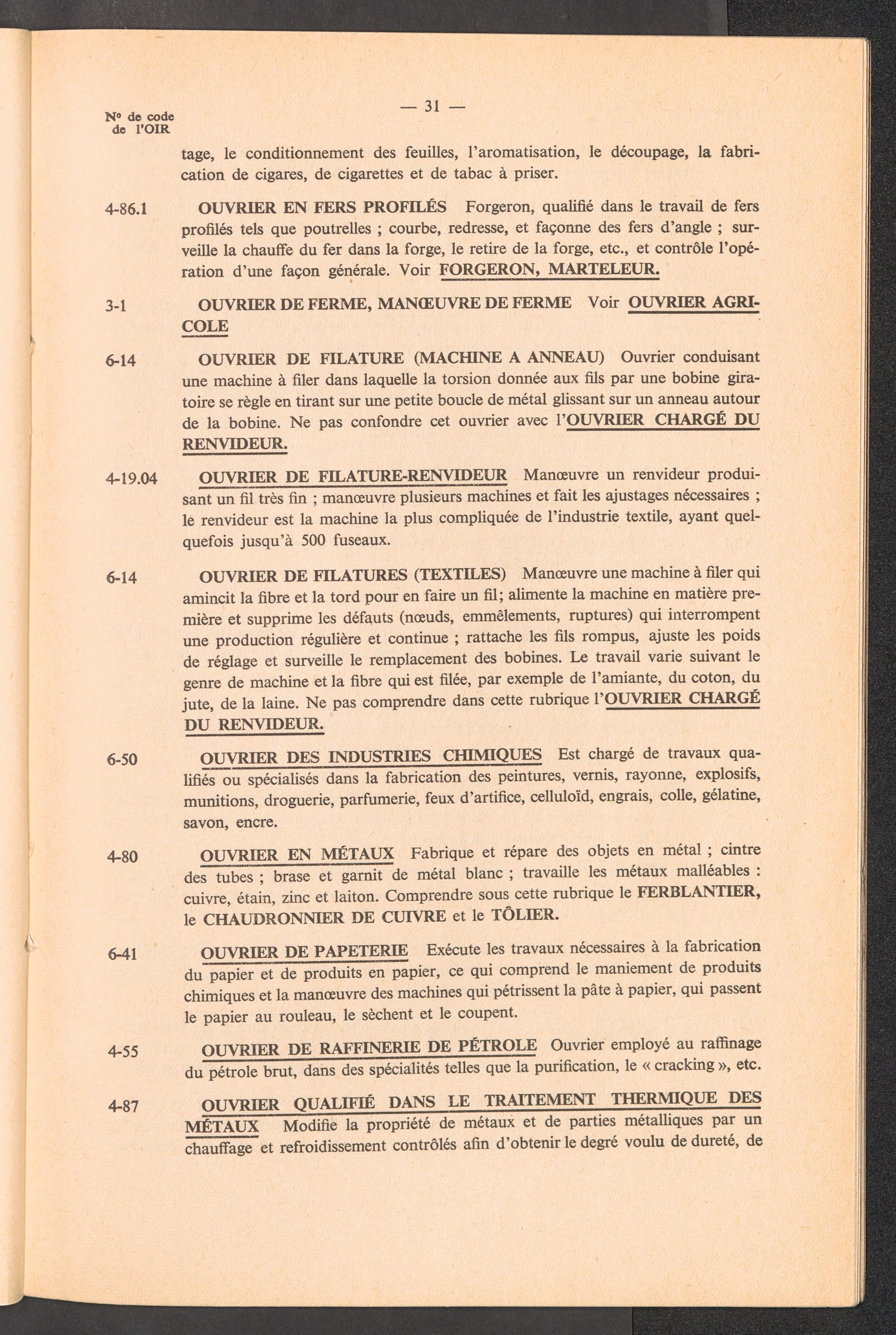 Nomenclature des professions avec définitions et renvois à utiliser pour l'établissement des rapports de l'OIR sur les aptitudes professionnelles des réfugiés / International Refugee Organization