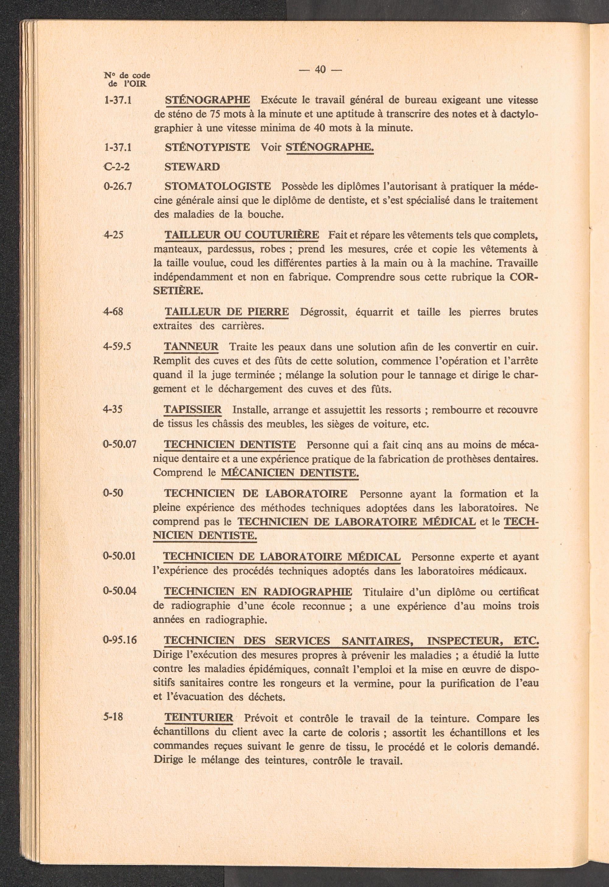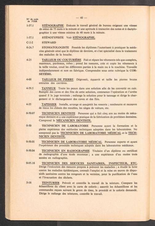 Nomenclature des professions avec définitions et renvois à utiliser pour l'établissement des rapports de l'OIR sur les aptitudes professionnelles des réfugiés / International Refugee Organization