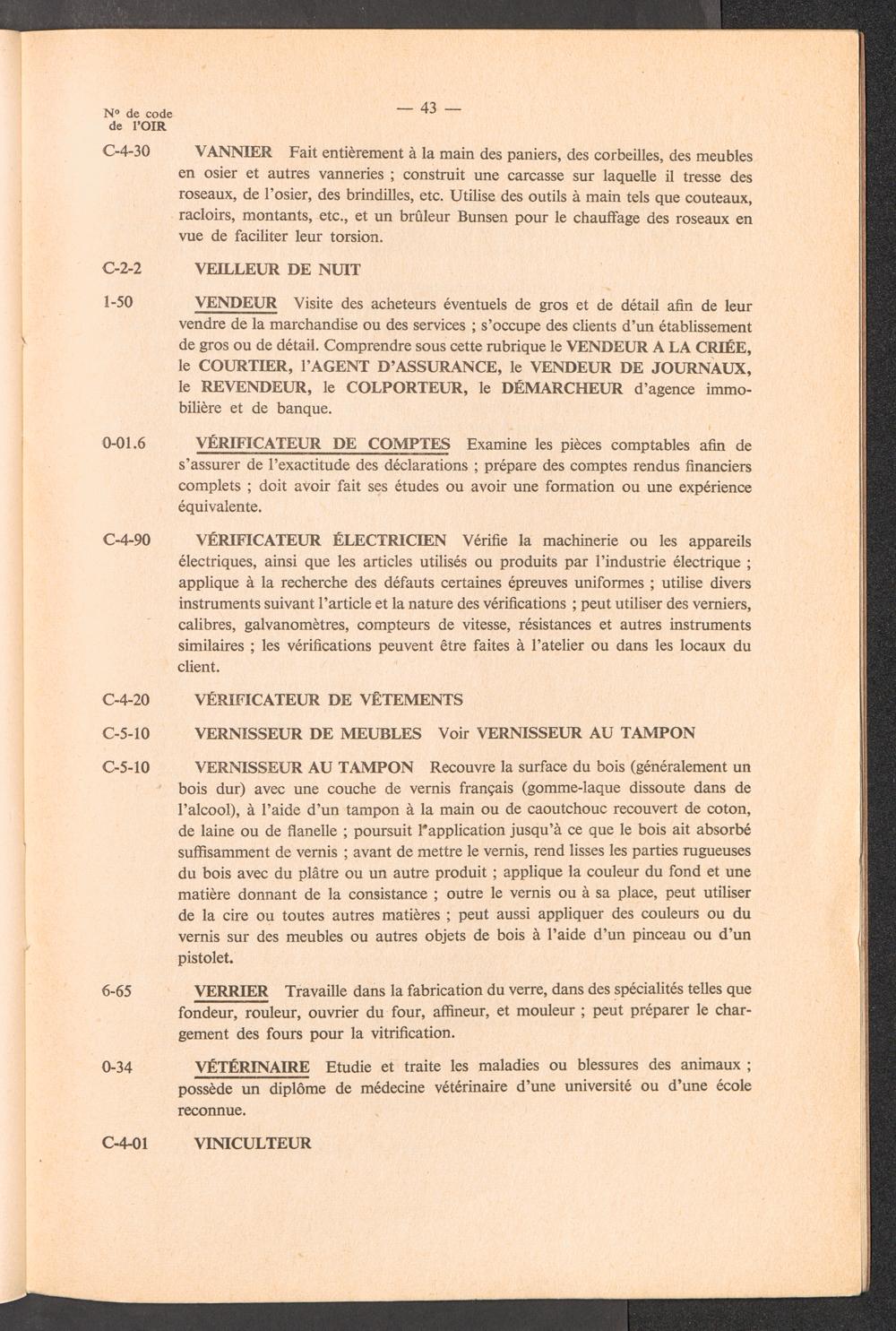 Nomenclature des professions avec définitions et renvois à utiliser pour l'établissement des rapports de l'OIR sur les aptitudes professionnelles des réfugiés / International Refugee Organization