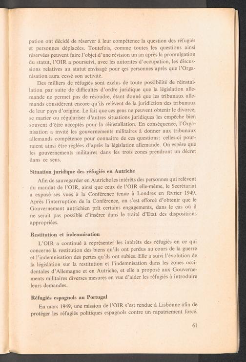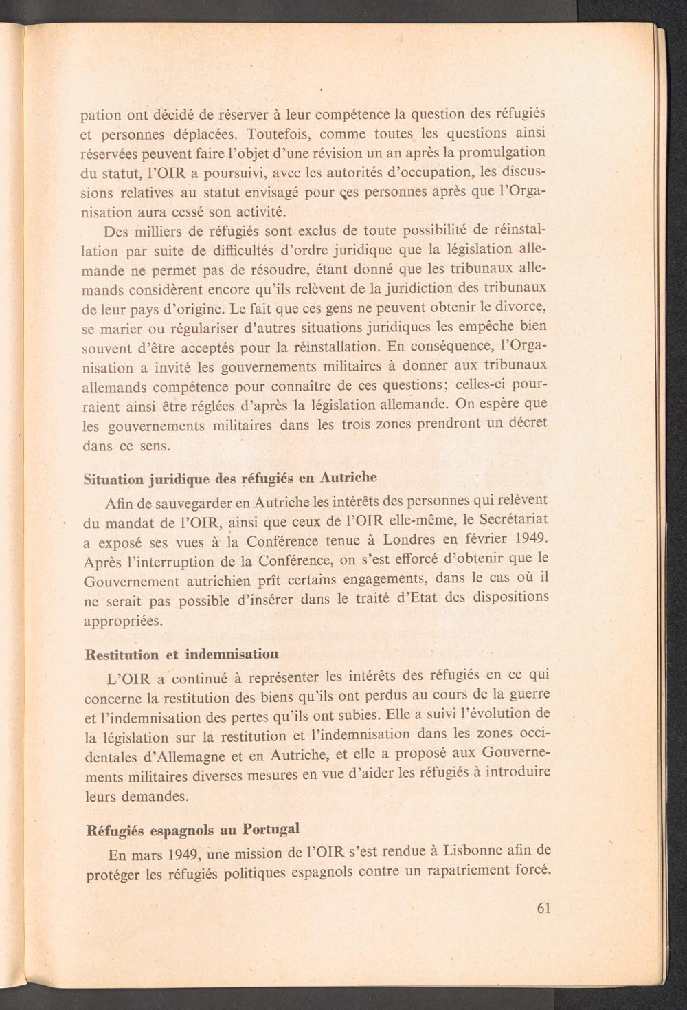 Rapport du Directeur Général au Conseil Général de l 'Organisaton Internationale pour les Réfugiés : 1 er juillet 1948 - 30 juin 1949 / Organisation Internationale pour les Réfugiés