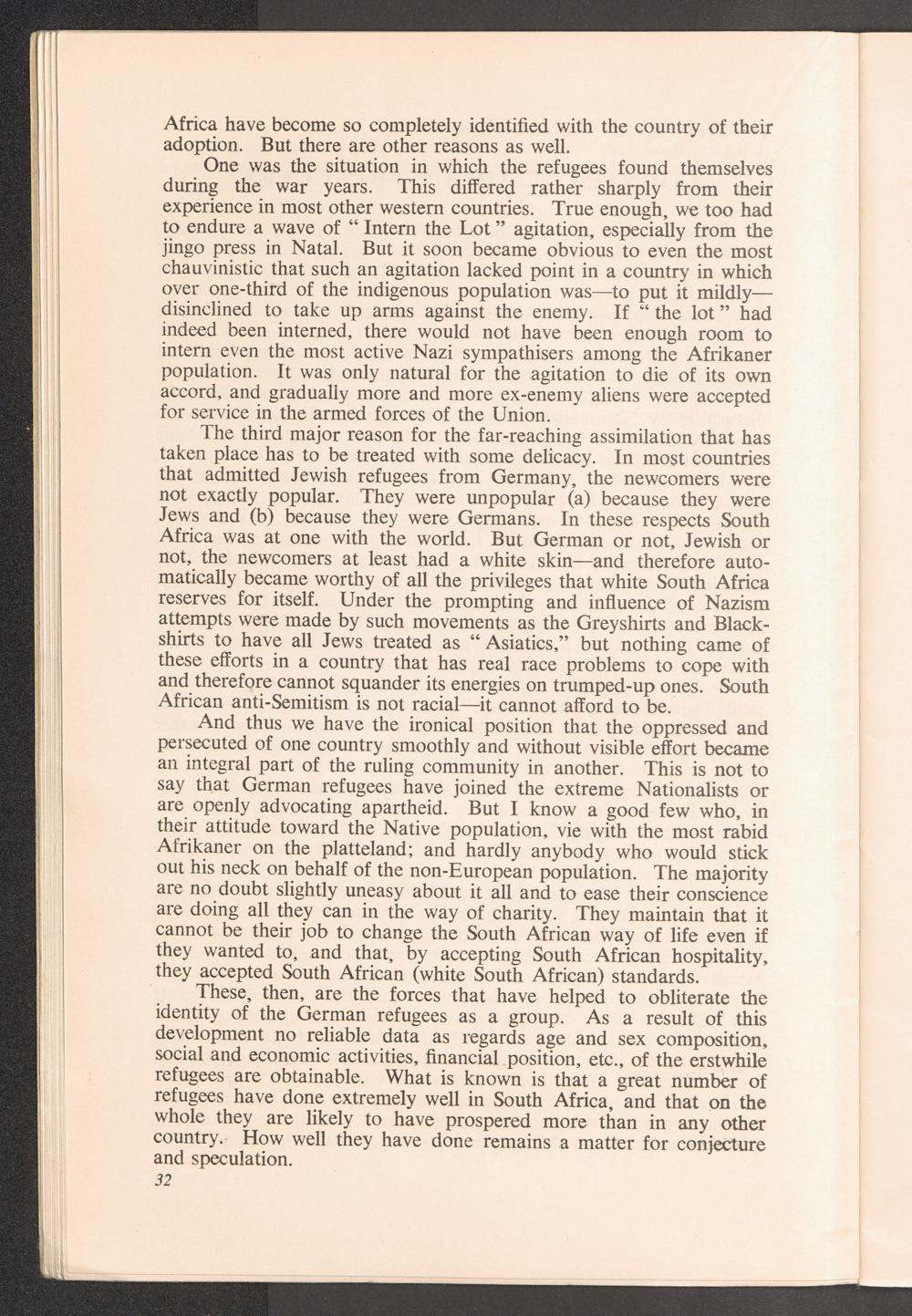 Dispersion and resettlement W. Heidenfeld (Johannesburg): Country without "Refugees"