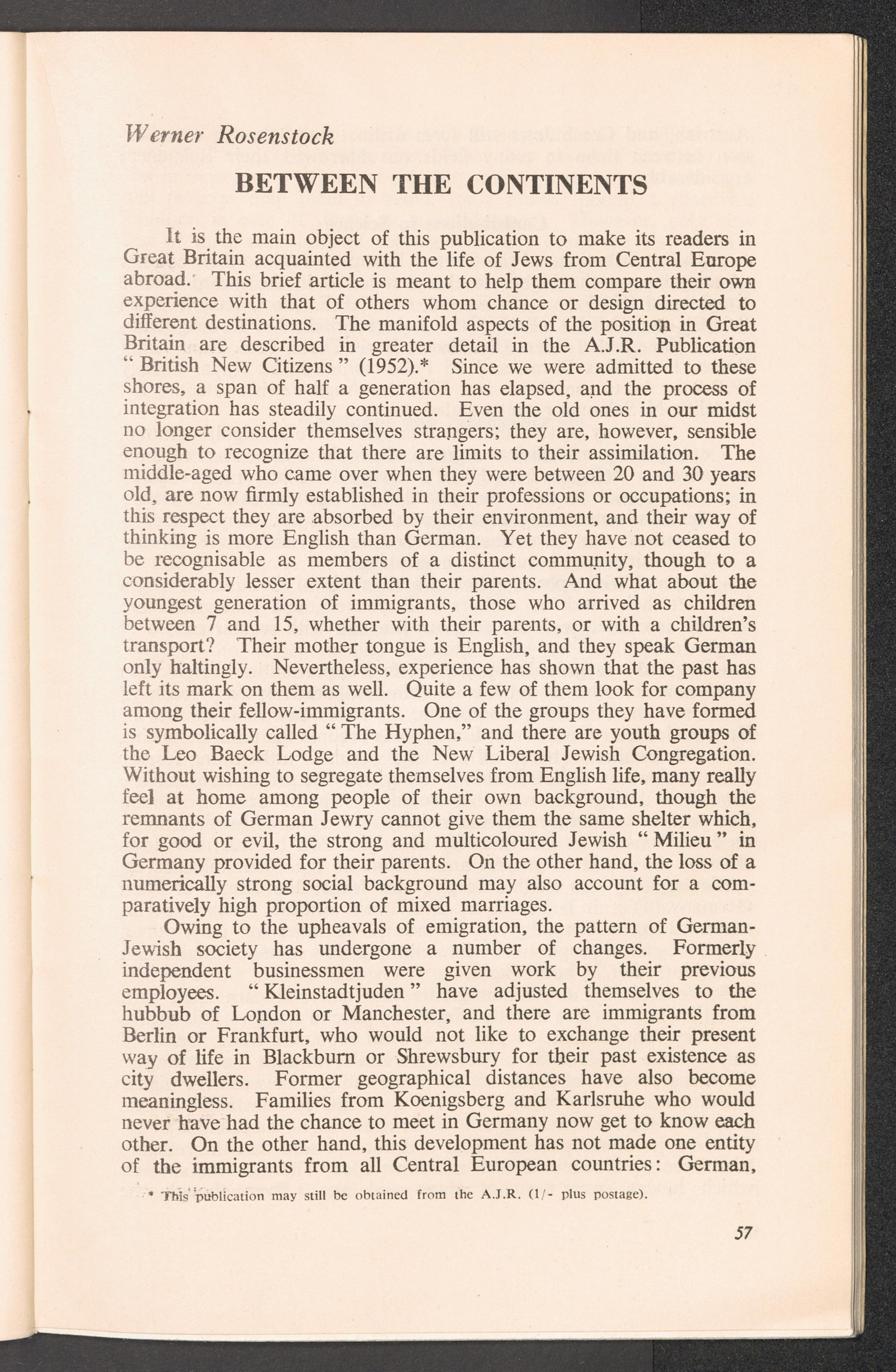 PDF 57 Werner Rosenstock: Between the Continents