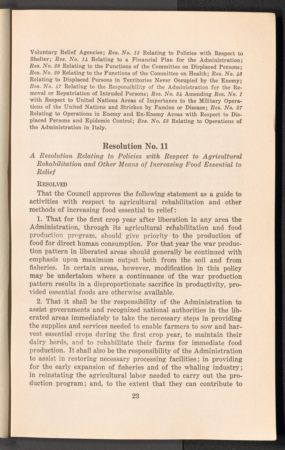 A compilation of the resolutions on policy, first and second sessions of the UNRRA Council / United Nations Relief and Rehabilitation Administration