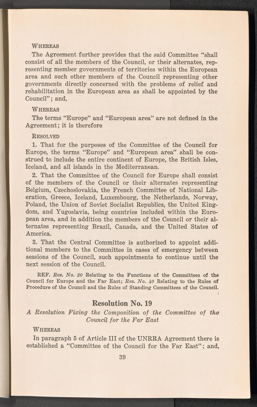 A compilation of the resolutions on policy, first and second sessions of the UNRRA Council / United Nations Relief and Rehabilitation Administration