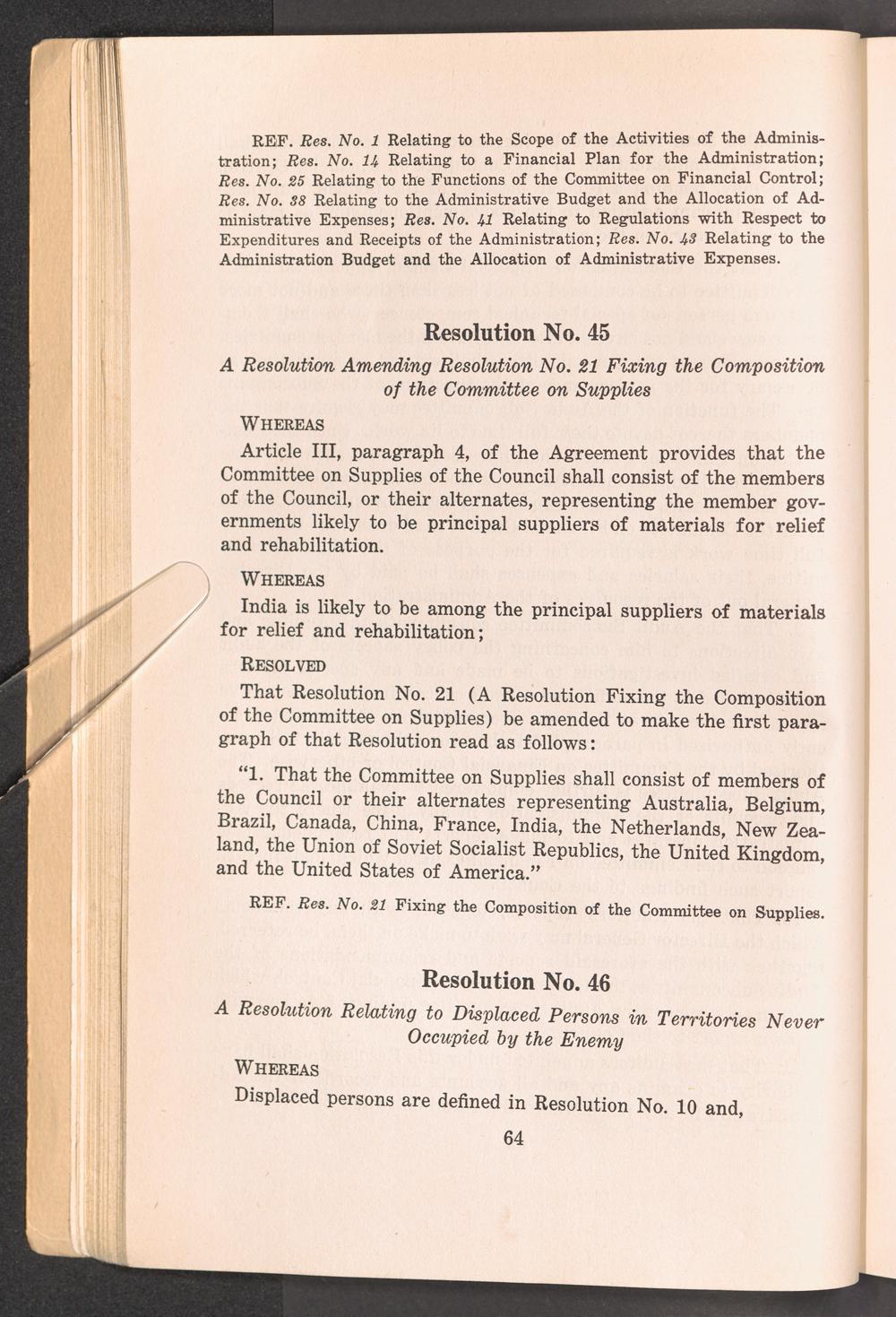 A compilation of the resolutions on policy, first and second sessions of the UNRRA... Resolutions on Policy