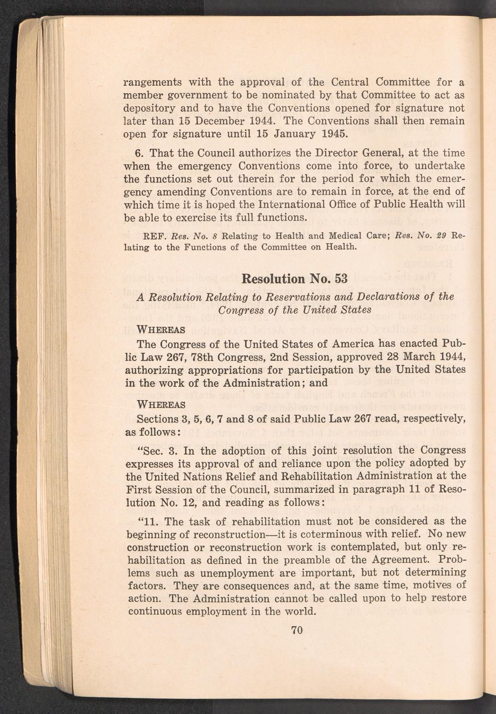 A compilation of the resolutions on policy, first and second sessions of the UNRRA... Resolutions on Policy