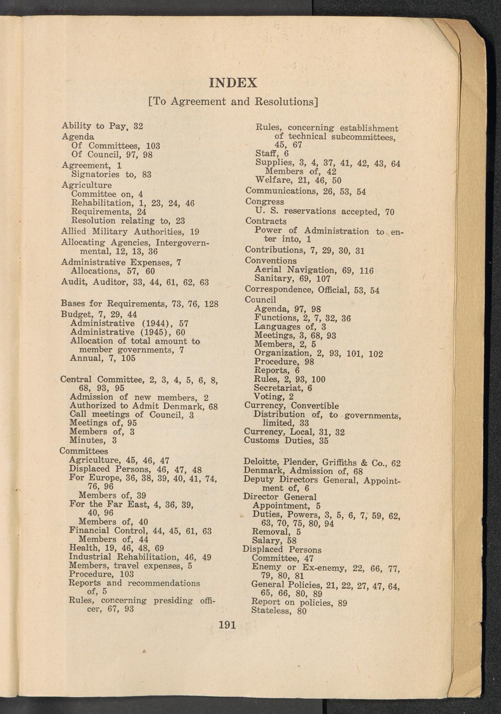 A compilation of the resolutions on policy, first and second sessions of the UNRRA... Register