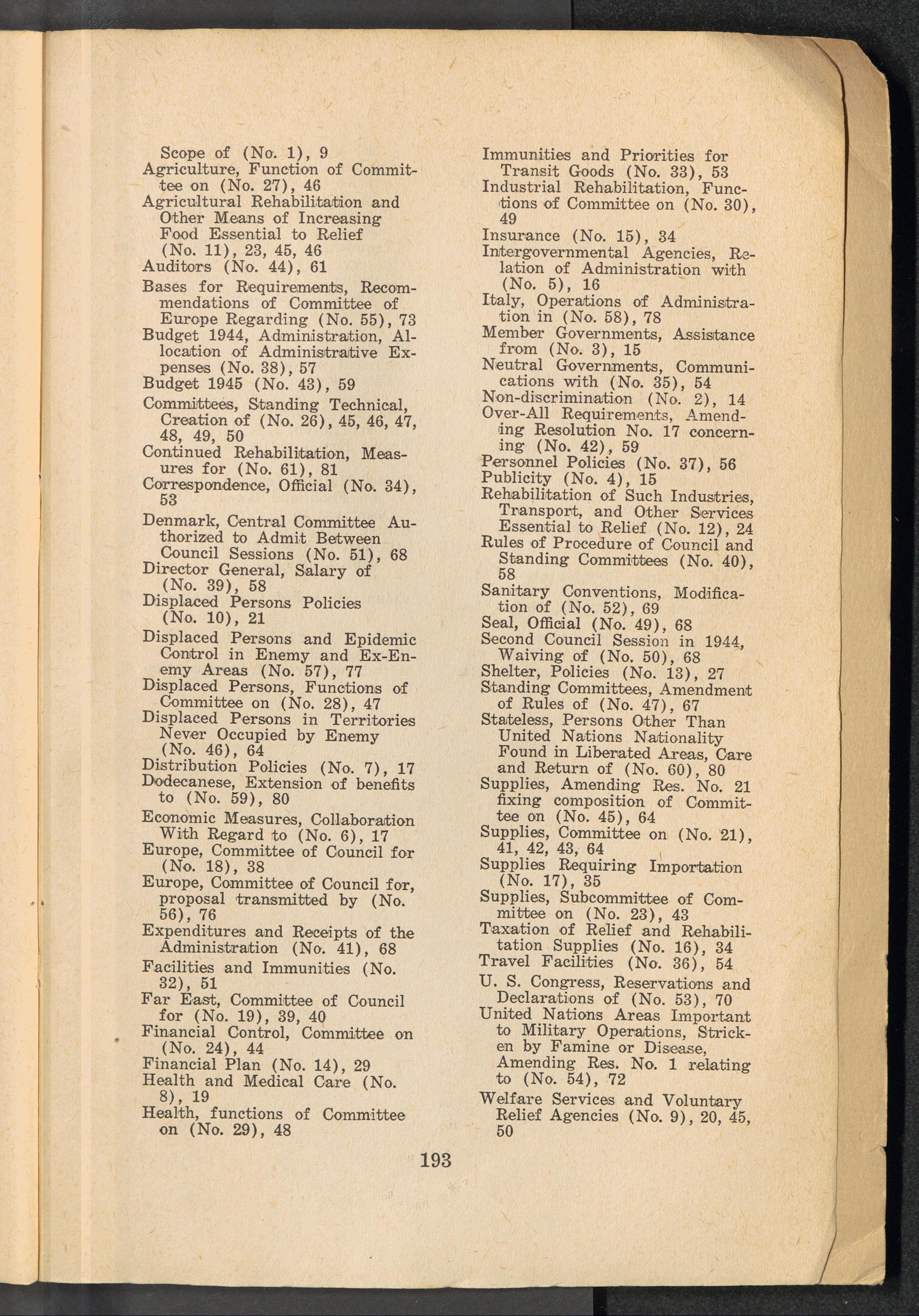 A compilation of the resolutions on policy, first and second sessions of the UNRRA... Register