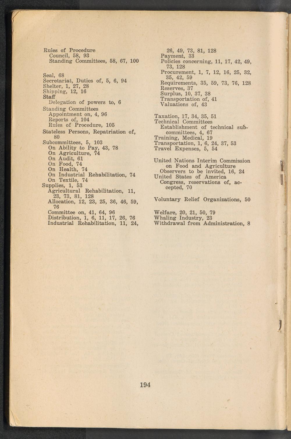 A compilation of the resolutions on policy, first and second sessions of the UNRRA... Register