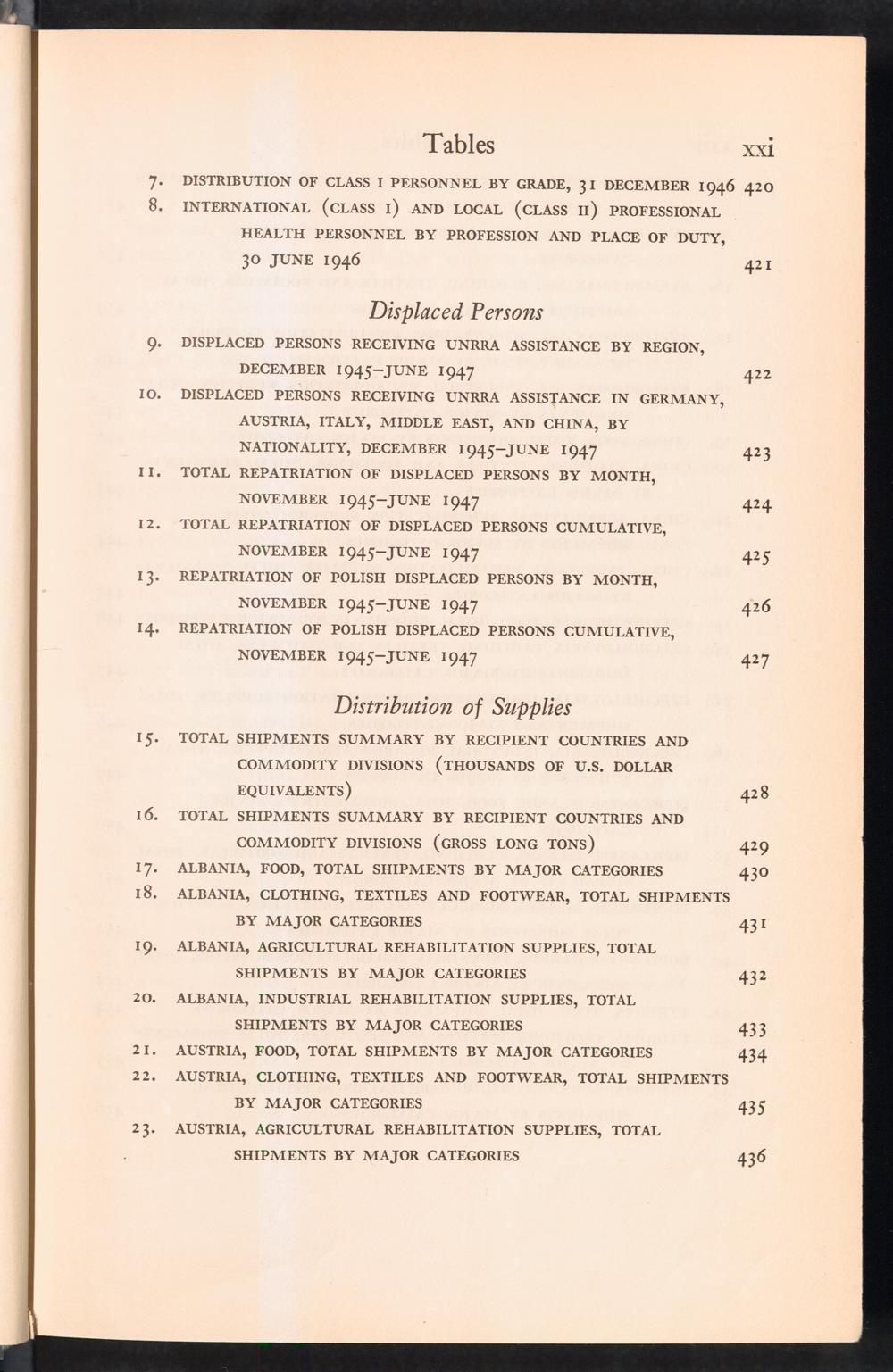 UNRRA Vol. 1. UNRRA Tables