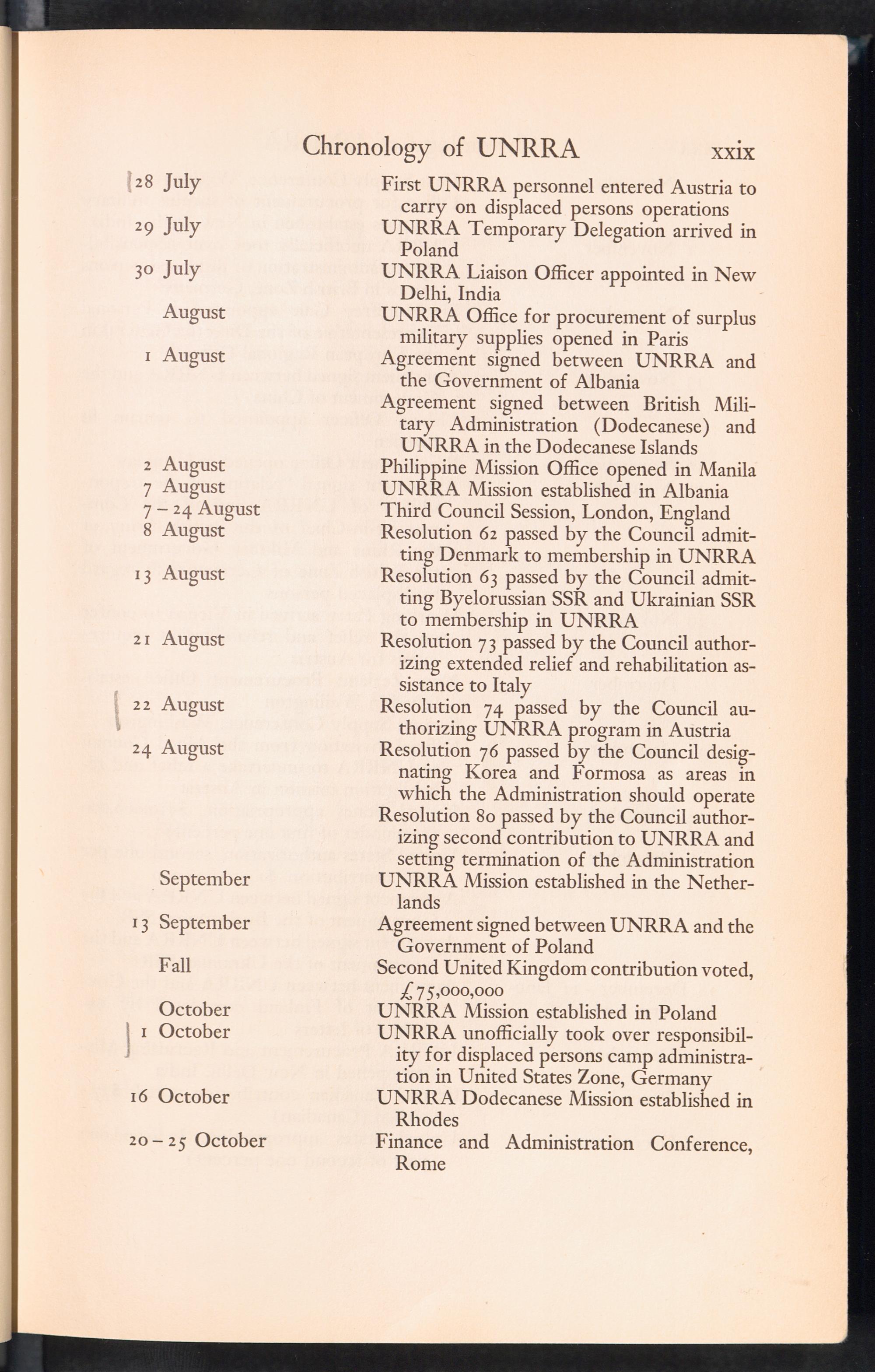 UNRRA Vol. 1. UNRRA Chronology of UNRRA