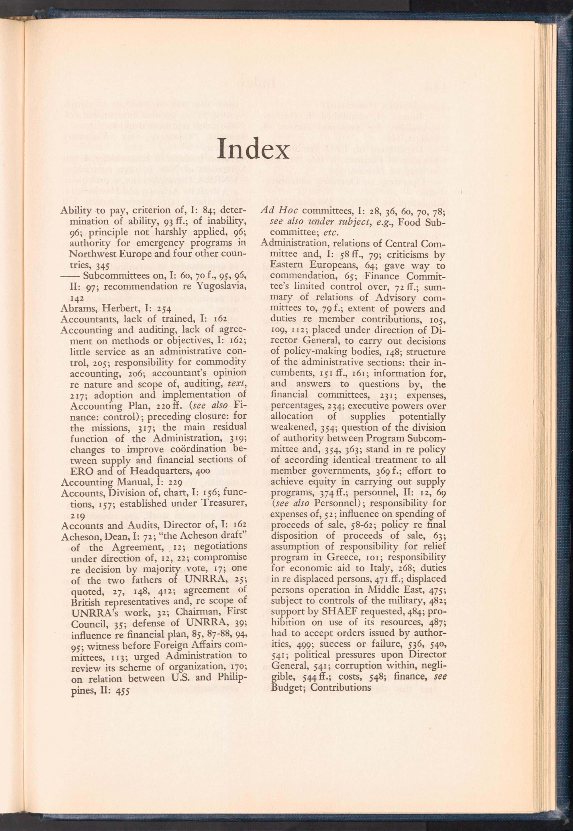 UNRRA Vol. II. UNRRA Index