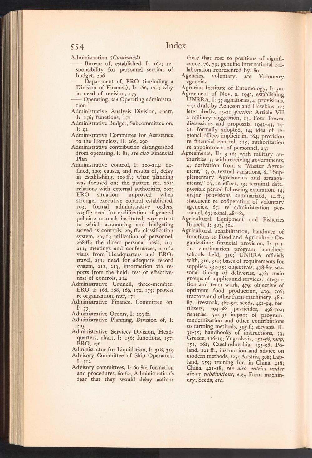 UNRRA Vol. II. UNRRA Index