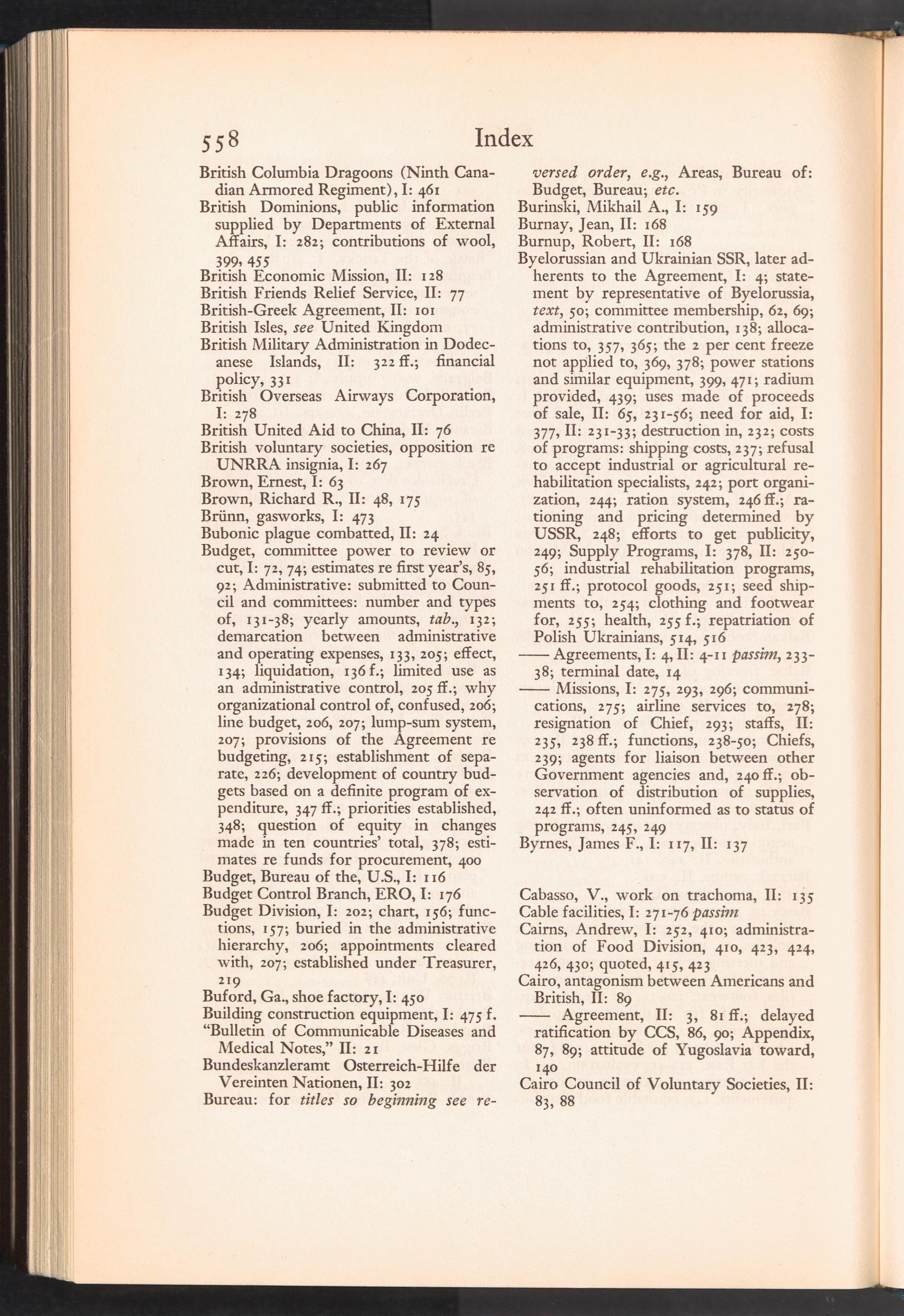 UNRRA Vol. II. UNRRA Index