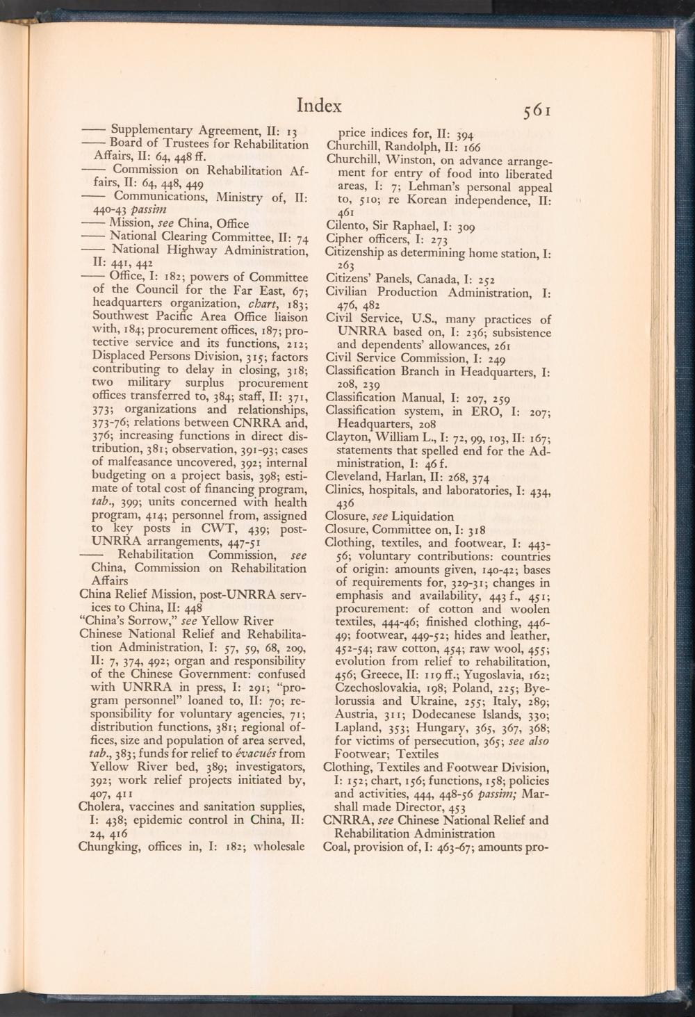 UNRRA Vol. II. UNRRA Index