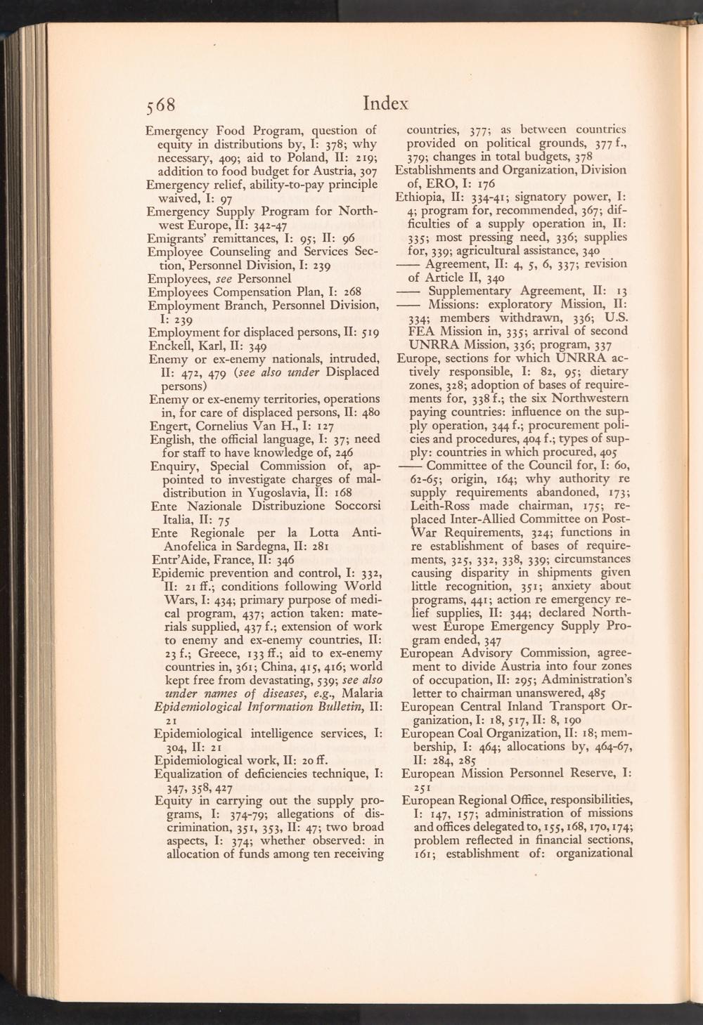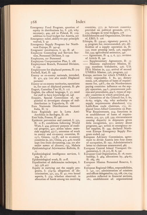 UNRRA Vol. II. UNRRA Index