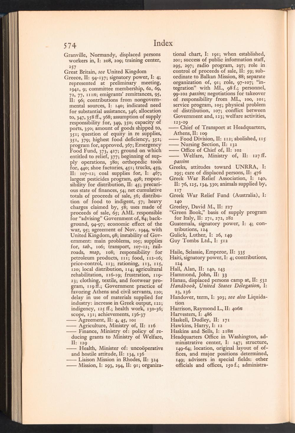 UNRRA Vol. II. UNRRA Index
