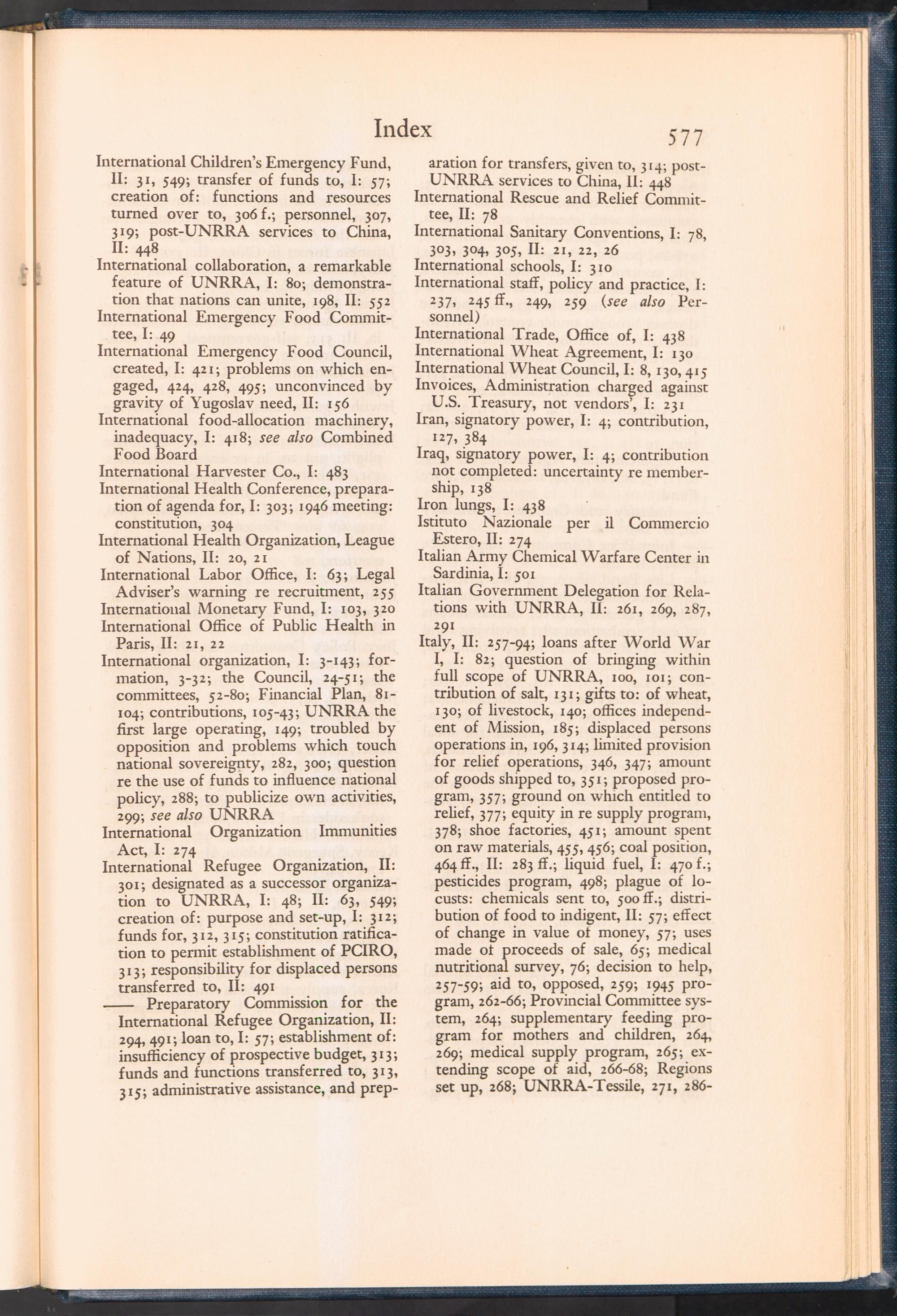 UNRRA Vol. II. UNRRA Index
