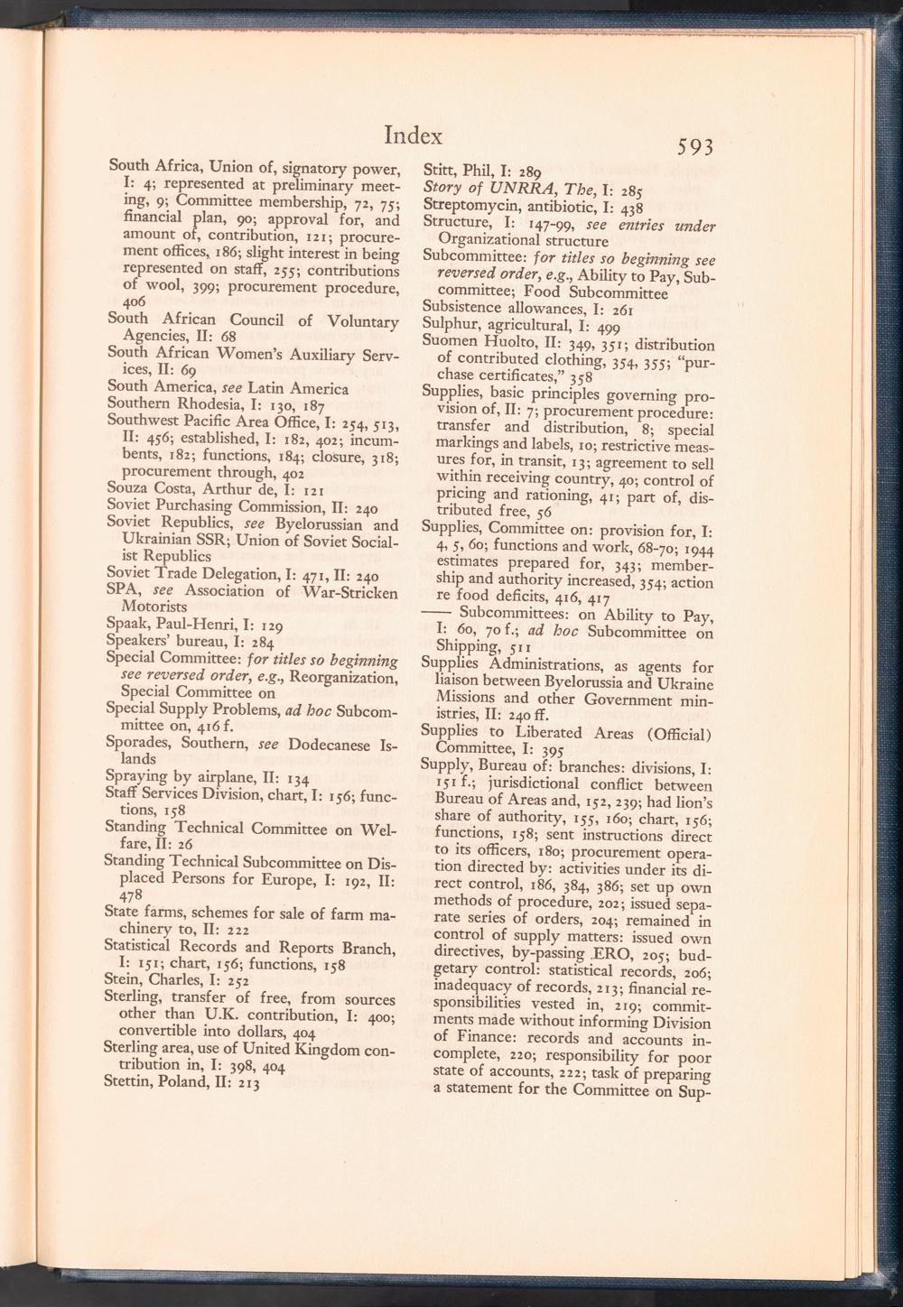 UNRRA Vol. II. UNRRA Index