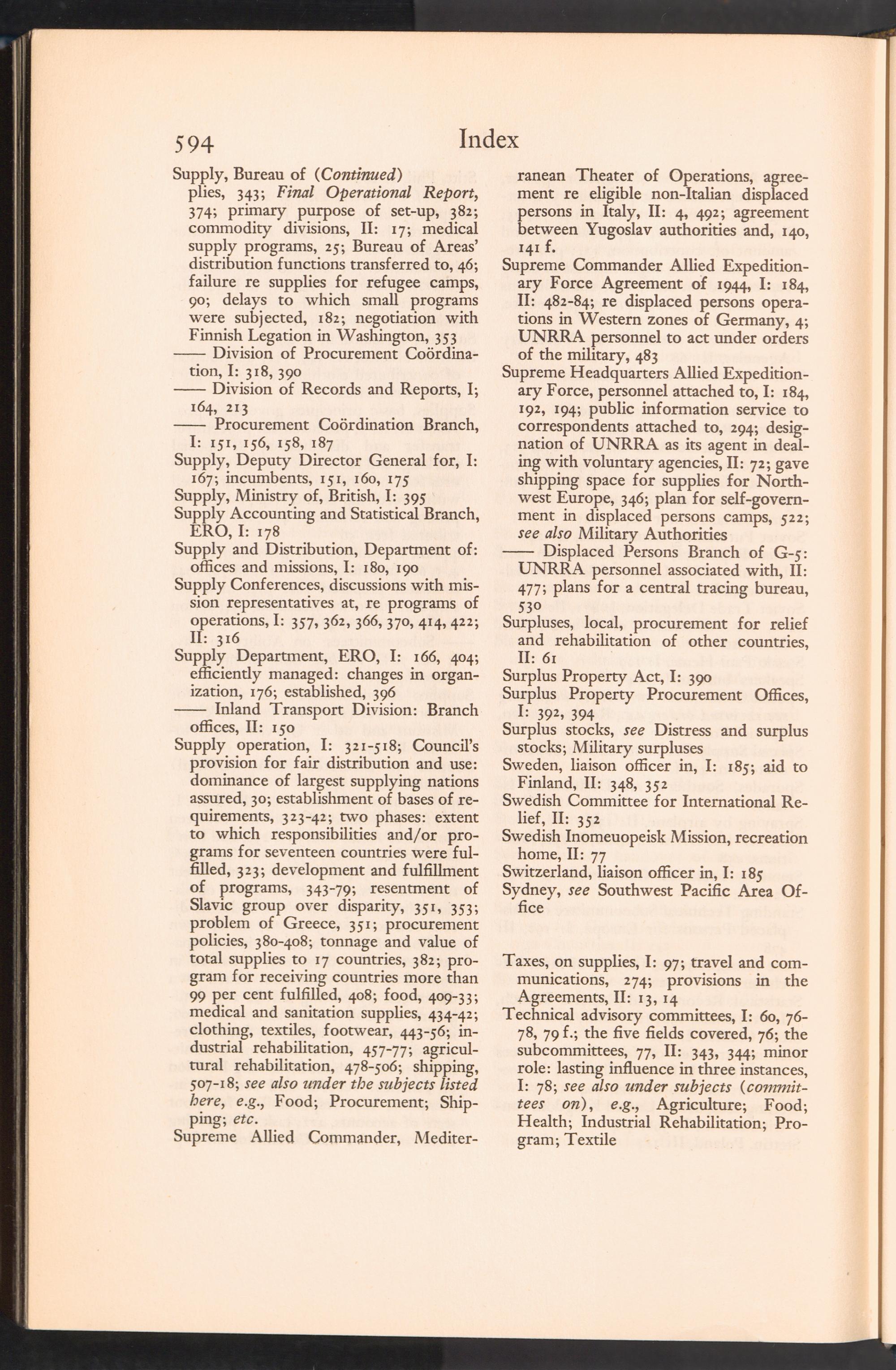 UNRRA Vol. II. UNRRA Index