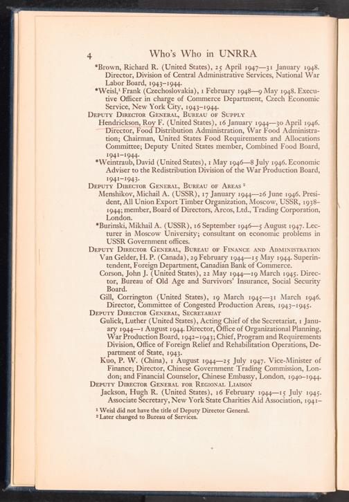 UNRRA Vol. III. UNRRA Appendices Appendix One: Who's Who in UNRRA