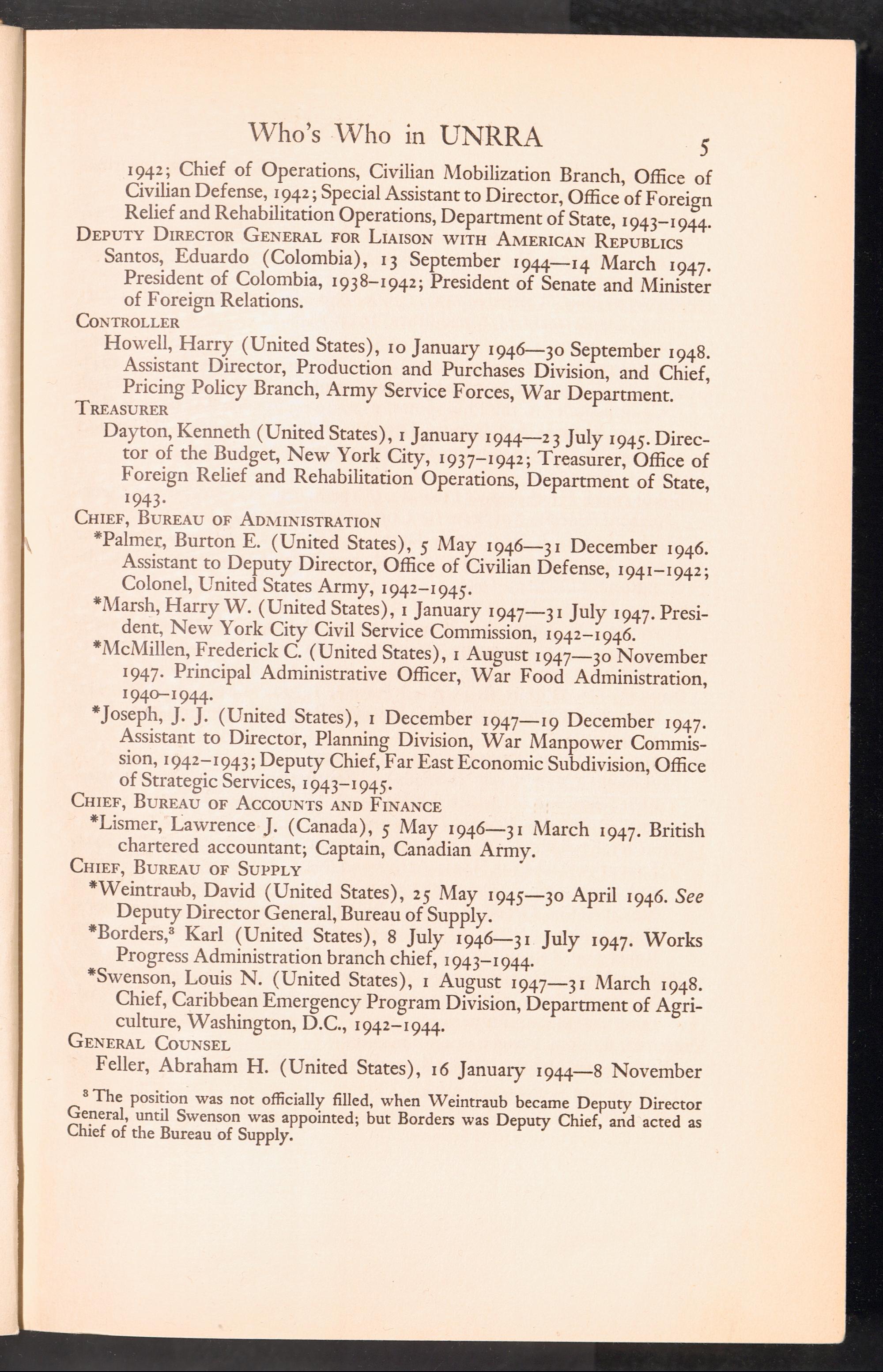 UNRRA Vol. III. UNRRA Appendices Appendix One: Who's Who in UNRRA