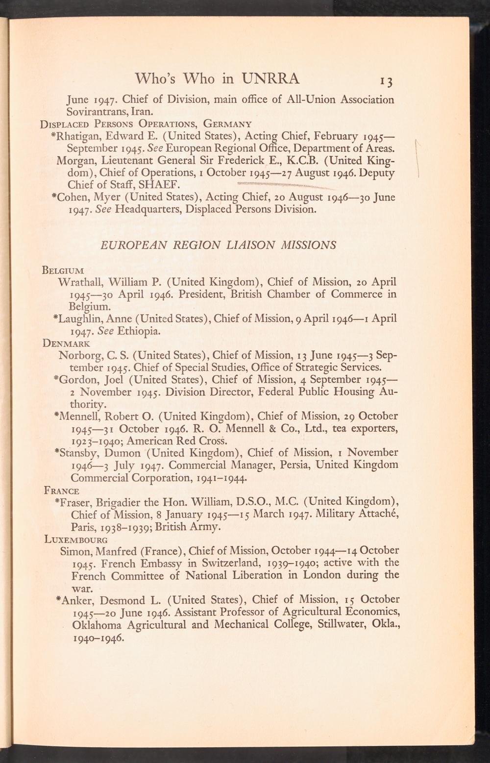 UNRRA Vol. III. UNRRA Appendices Appendix One: Who's Who in UNRRA
