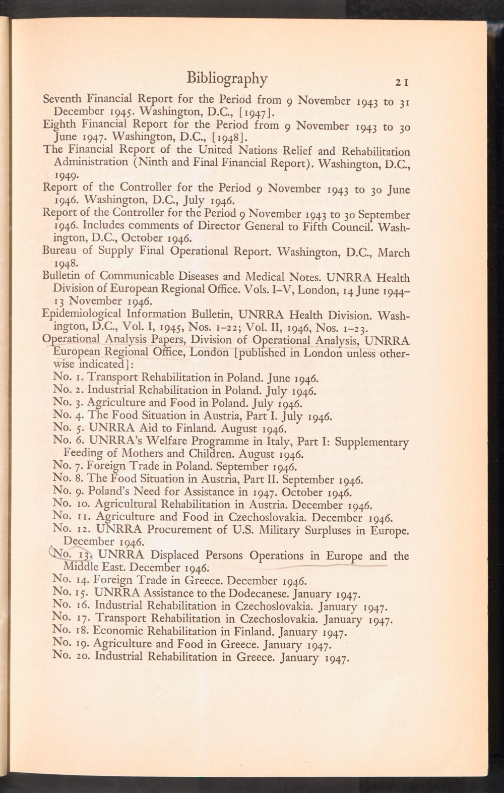 UNRRA Vol. III. UNRRA Appendices Appendix Two: Bibliography