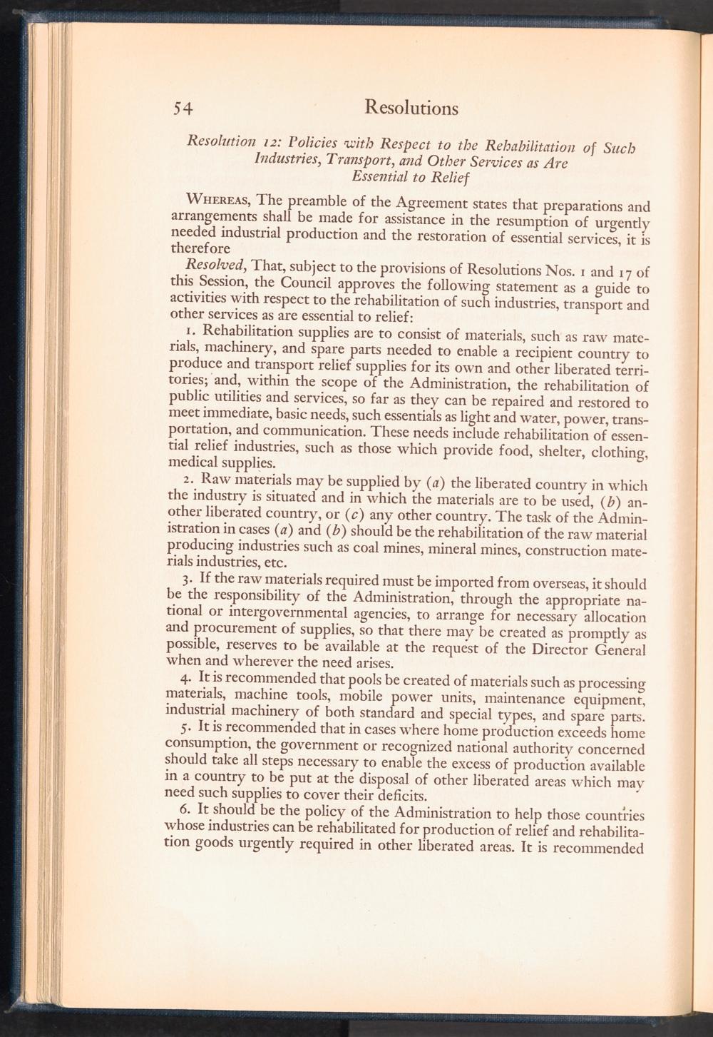 UNRRA Vol. III. UNRRA Appendices Appendix Four: Resolutions