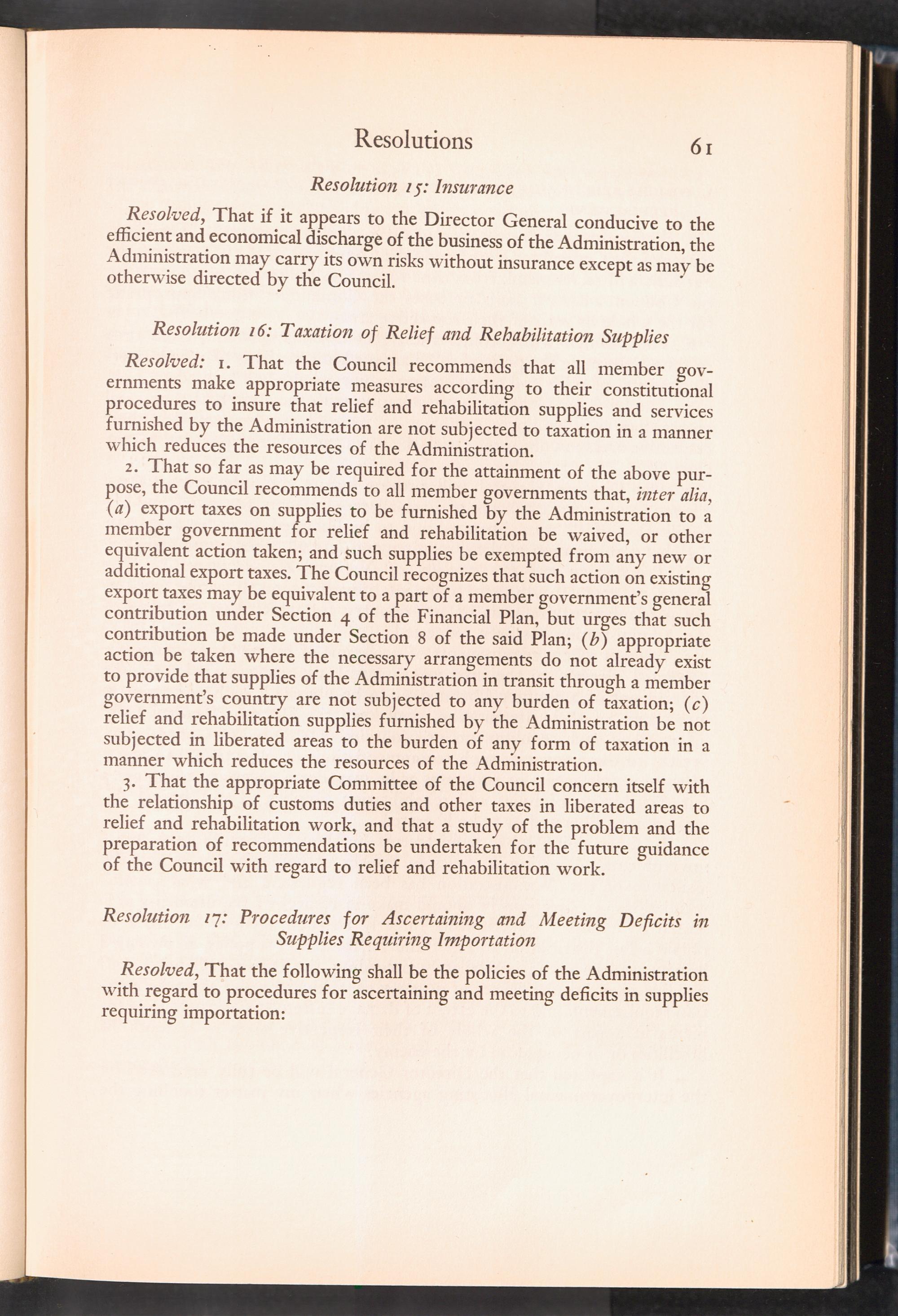 UNRRA Vol. III. UNRRA Appendices Appendix Four: Resolutions